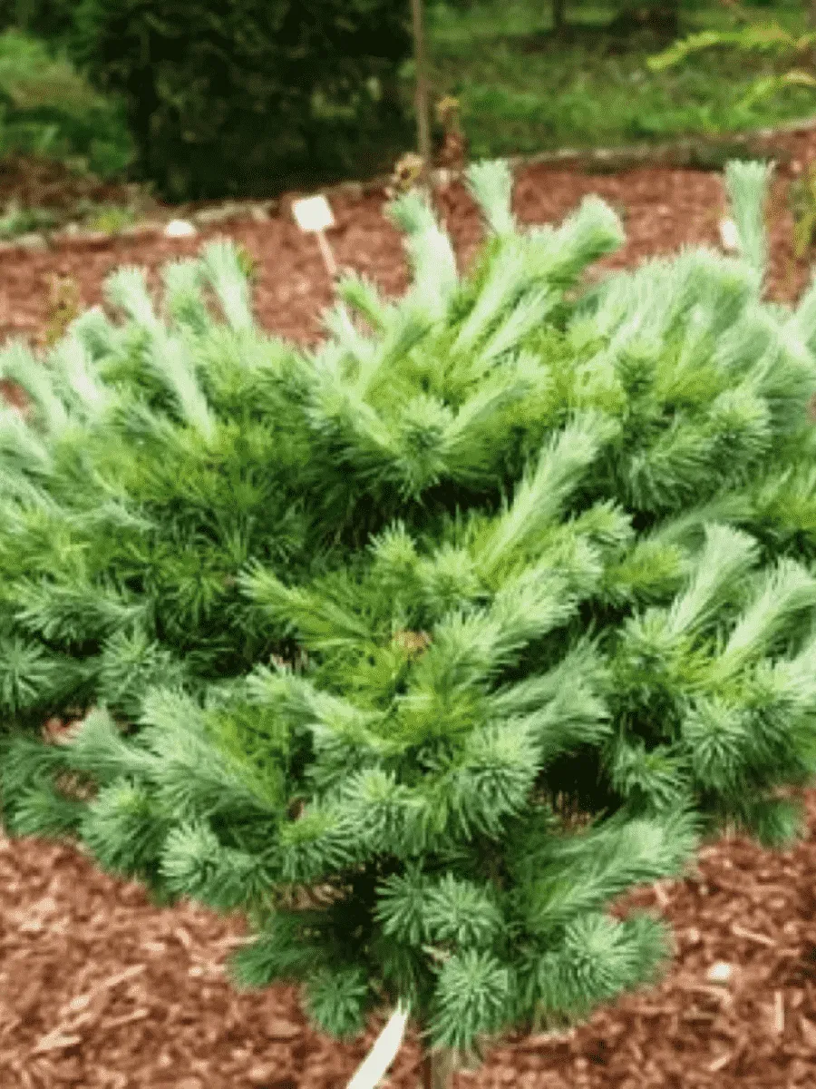 Лиственница Кемпфера сорта *Cupido* представляет собой стройную пирамидальную красавицу высотой до пяти метров, обладающую густой кроной и нежной серебристо-голубоватой хвоей, придающей ей особую воздушность и элегантность. Молодые побеги покрыты мягкой пушистой корой светло-зелёного оттенка, постепенно приобретающей серовато-коричневый тон с возрастом. Хвоя лиственницы Кемпфера *Cupido*, короткая и мягкая, образует густое облако иголок, переливающихся голубым оттенком на солнце, создавая впечатление лёгкого шелестящего покрова. Весной дерево покрывается мелкими золотистыми шишечками, украшающими ветви подобно драгоценностям, подчёркивая природную гармонию и утончённость облика этой хвойной культуры. Лиственница предпочитает солнечные места, хорошо дренированные почвы и умеренный климат, демонстрируя устойчивый рост и декоративность даже в условиях городских парков и садов средней полосы России.