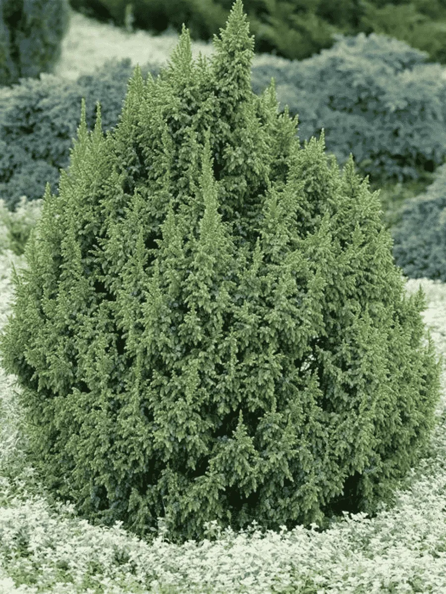 Можжевельник чешуйчатый Loderi — вечнозелёный кустарник благородной внешности, отличающийся компактностью форм и изысканной декоративностью кроны. Его густые ветви покрыты мелкими, плотно прижатыми друг к другу листьями-чешуйками изумрудно-зелёного оттенка, придающими растению элегантную строгость и утончённую красоту. Крона имеет аккуратную пирамидальную форму, постепенно расширяющуюся книзу, создавая впечатление стройности и лёгкости. Цветёт растение едва заметно, раскрывая мелкие невзрачные цветки весной среди густой зелени хвои. Этот можжевельник предпочитает солнечные места и хорошо дренированные почвы, демонстрируя устойчивость к засухе и морозу. Благодаря своей неприхотливости и привлекательному внешнему виду, он широко используется в ландшафтном дизайне парков и садов, украшая собой аллеи и композиции каменистых садов, где подчёркивает свою природную гармонию и очарование.