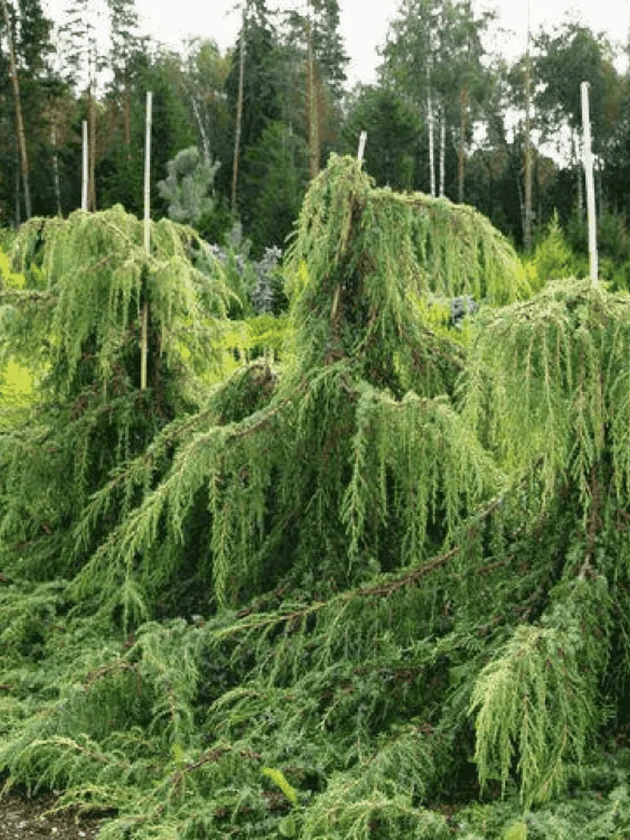 Можжевельник обыкновенный Horstmann — вечнозелёный кустарник или дерево высотой до нескольких метров, обладающий стройной пирамидальной кроной и плотной тёмно-зелёной хвоей. Его игловидные листья короткие, жёсткие и колючие, расположенные мутовчато по три штуки, создавая впечатление густого бархатистого покрова. Цветёт растение мелкими невзрачными шишечками, едва заметными среди густой зелени ветвей. Растёт медленно, предпочитая солнечные места и сухие почвы, распространён преимущественно в горных районах Европы и Азии, где образует живописные заросли вдоль склонов и ущелий. Этот можжевельник отличается особой декоративностью благодаря своей строгой форме и насыщенному цвету листвы, способному оживлять ландшафт даже зимой, когда большинство растений теряет свою привлекательность.