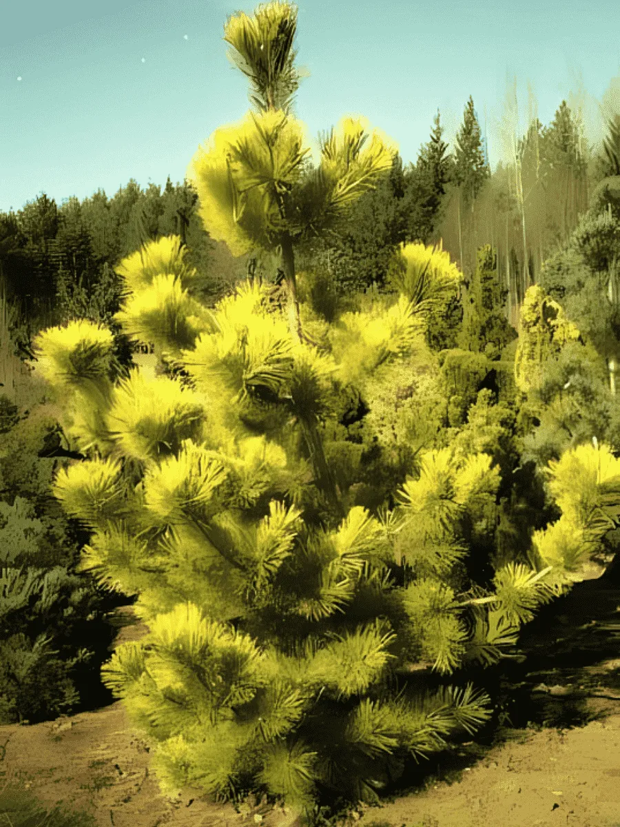 Сосна Тунберга сорта **«Ogon»** представляет собой компактную декоративную хвойную породу, отличающуюся изысканной золотисто-жёлтой хвоей, особенно ярко проявляющейся весной и осенью. Её ветви густо покрыты короткими иглами длиной около двух сантиметров, собранными в пучки по две штуки, придающие кроне живописную ажурность и воздушность. Растёт медленно, ежегодно прибавляя всего несколько сантиметров, достигая зрелости лишь через десятилетия. Форма дерева округлая, плотная, симметричная, идеально подходящая для небольших садов и каменистых композиций. Цветение сосны выражено слабо, мужские шишки малозаметны, женские же развиваются постепенно, превращаясь в миниатюрные коричневые шишечки, украшающие крону после созревания семян. Этот сорт предпочитает солнечные места, хорошо переносит морозы и засухоустойчив, благодаря чему широко используется в ландшафтном дизайне умеренных зон России и Европы.