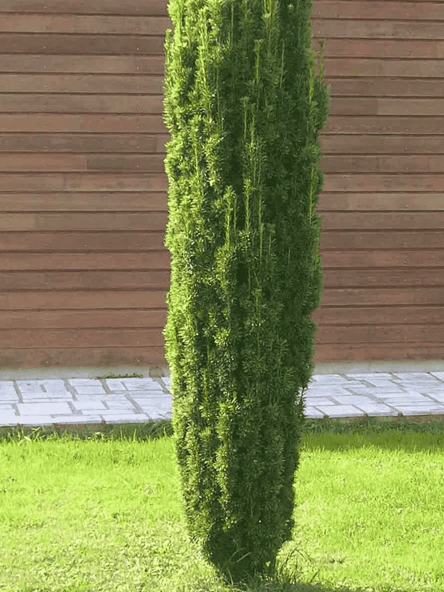 Тис ягодный Fastigiata представляет собой стройную колонновидную разновидность вечнозелёного хвойного дерева, отличающуюся плотной узкой кроной и медленным ростом. Его ветви расположены горизонтально, слегка приподнятые вверх, создавая впечатление аккуратной пирамиды. Листья мелкие, игольчатые, тёмно-зелёные, блестящие, плотно прижаты к побегам, придавая дереву благородный строгий облик даже зимой. Растёт медленно, достигая высоты до трёх метров лишь спустя несколько десятилетий после посадки. Цветёт редко, незаметно, поскольку цветки невзрачные и малозаметные среди густой хвои. Предпочитает тенистые места, хорошо переносит городские условия, устойчив к загрязнению воздуха и засухе. Благодаря своей декоративности и компактности широко используется в ландшафтном дизайне парков и садов, где служит прекрасным акцентом благодаря чётким геометрическим очертаниям и насыщенному цвету листвы.