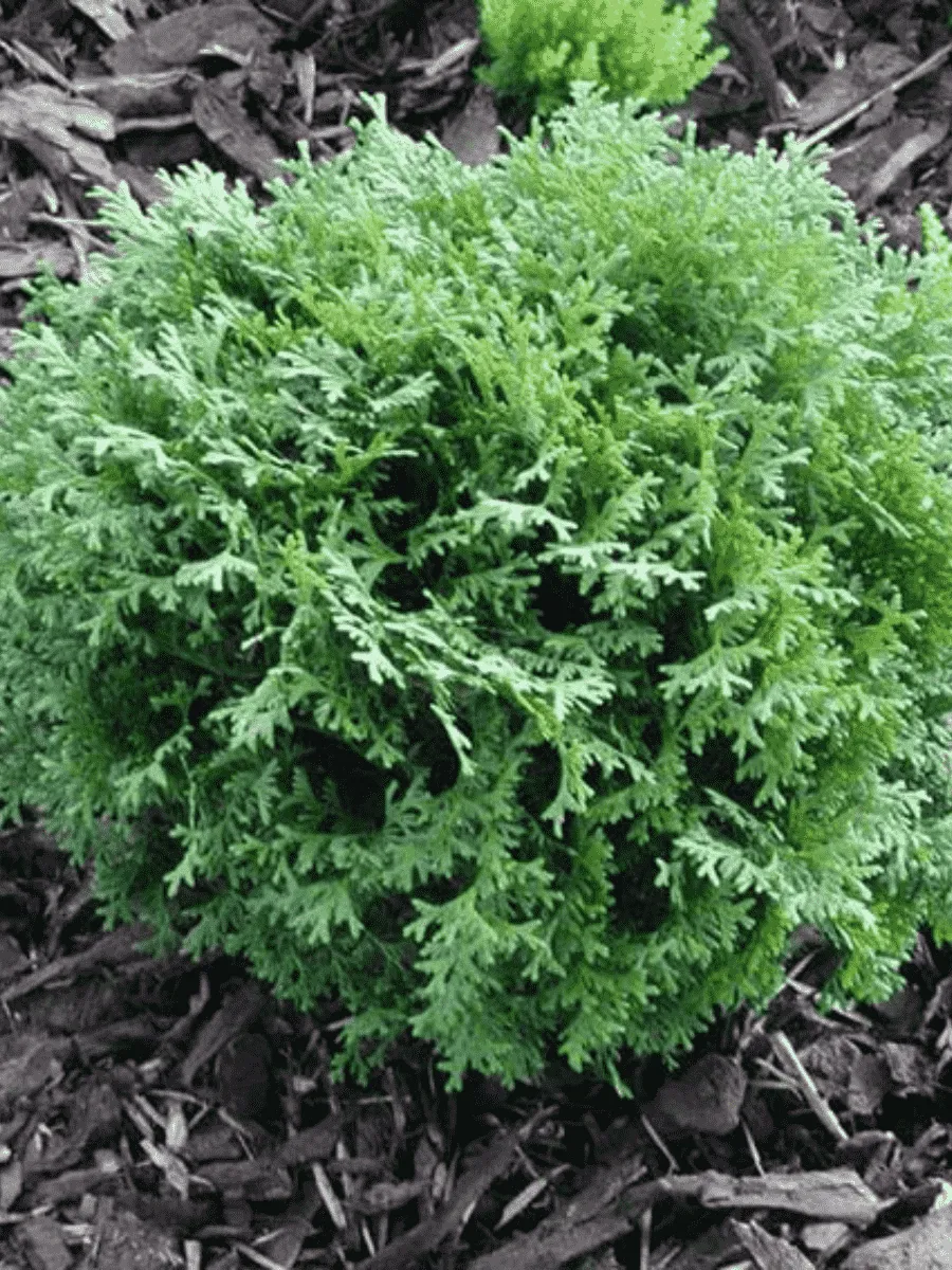 Туя западная сорта *Little Gem* представляет собой миниатюрную декоративную разновидность вечнозелёного хвойного кустарника, отличающуюся компактностью форм и медленным ростом. Её густые ветви образуют аккуратную округлую крону высотой до полуметра, украшенную мелкими чешуйчатыми листьями насыщенного тёмно-зелёного цвета, сохраняющих свежесть и сочность даже зимой. Листья мелкие, плотно прижатые друг к другу, создают впечатление бархатистого покрова, придающего растению особую привлекательность и благородство облика. Цветёт растение незаметно, формируя небольшие невзрачные шишечки, однако именно пышная зелень делает этот сорт незаменимым элементом ландшафтного дизайна, способным украсить любой садовый уголок своей изысканной простотой и элегантной строгостью.