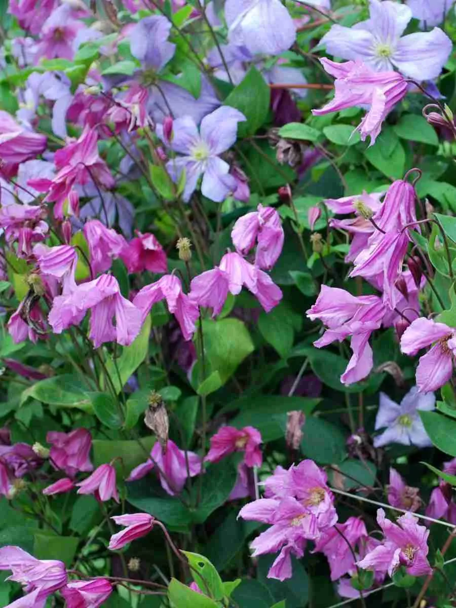 Клематис сорта *Allonushka* пленяет взор нежностью крупных цветков нежно-розового оттенка, украшенных тонкой пурпурной каймой по краям лепестков, словно лёгкий румянец утренней зари. Листья тёмно-зелёные, рассечённые на несколько овальных долей, придают растению элегантную ажурность и подчёркивают воздушность облика. Цветки распускаются обильно, создавая живописные каскады среди зелёной листвы, превращаясь в настоящее украшение сада. Этот сорт отличается компактностью и умеренным ростом, достигая высоты около полутора метров, благодаря чему идеально подходит для вертикального озеленения небольших садов и балконов. Период цветения продолжительный, начинается в июне и продолжается до конца лета, наполняя пространство чарующим ароматом и радуя глаз своей утончённой красотой.