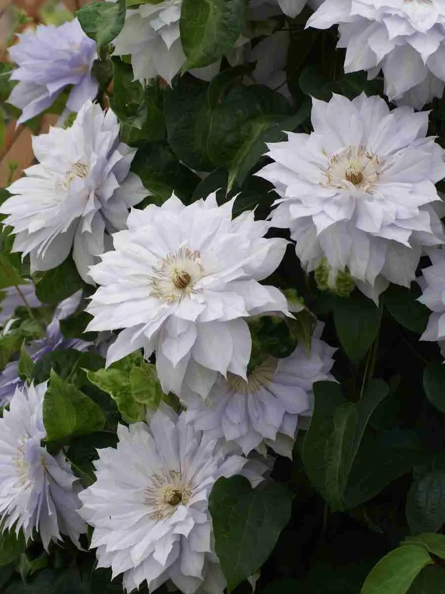 Клематис гибридный *First Light* пленяет взор нежностью своего цветения и элегантной формой лианоподобных стеблей, достигающих высоты до трёх метров. Листья тёмно-зелёные, блестящие, рассечённые на три овальных сегмента, придают растению свежесть и воздушность облика. Цветки крупные, диаметром около десяти сантиметров, распускаются в июне-июле, очаровывая своей изысканной палитрой оттенков от нежно-розового до светло-пурпурного с едва заметным серебристым напылением по краям лепестков. Сердцевина цветка украшена пучком тонких золотистых тычинок, придающим особую утончённость композиции. Этот клематис предпочитает солнечные места, хорошо дренированные почвы и умеренный полив, демонстрируя свою неприхотливость и способность быстро разрастаться, покрывая опоры густым ковром цветов и зелени.