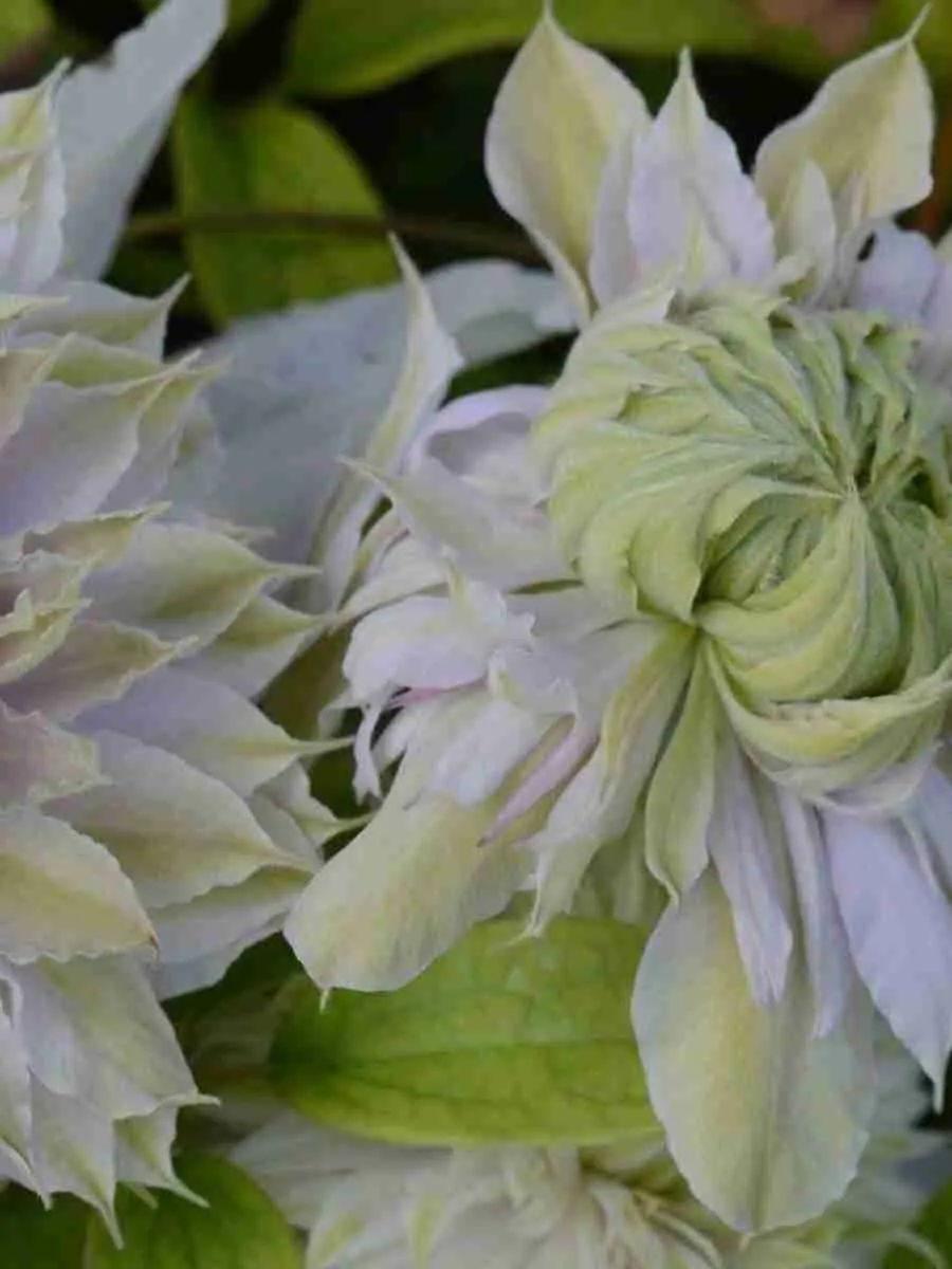 Клематис сорта **Moonglow** пленяет взор нежностью серебристо-голубых цветков, словно отражающих лунный свет среди зелени сада. Его крупные цветки диаметром до 15 см раскрываются широко раскрытыми лепестками, плавно переходящими от светло-сиреневого оттенка у основания к чистейшему голубовато-серебристому цвету ближе к краям. Листья тёмно-зелёные, блестящие, рассечённые на три овальных листочка с зубчатыми краями, придают растению элегантность и свежесть облика. Цветёт обильно и продолжительно, начиная с июня и заканчивая сентябрём, украшая вертикальные опоры пышной массой цветов. Мощная лиана быстро разрастается, достигая высоты около трёх метров, легко цепляясь тонкими усиками за любые поверхности и создавая живописную живую ширму. Этот сорт предпочитает солнечные места, плодородные почвы и умеренный полив, прекрасно адаптируясь к условиям средней полосы России и радуя садоводов своей неприхотливостью и декоративностью долгие годы.