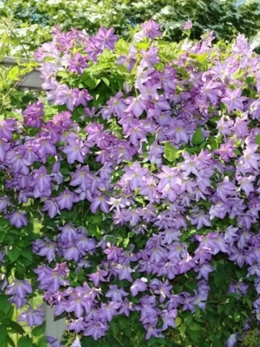 Клематис сорта *Solina* пленяет взор нежностью и утончённостью своего облика. Это элегантная лиана с гибкими побегами, достигающими длины до трёх метров, украшенная крупными сердцевидными листьями насыщенного зелёного цвета, слегка блестящими от природы. Цветки раскрываются пышной волной в конце весны и радуют глаз всё лето, демонстрируя изысканные оттенки нежно-розового и кремово-белого цветов, словно лепестки фарфора, окутанного лёгким румянцем утренней зари. Сердце цветка украшают многочисленные тычинки золотисто-жёлтого оттенка, придающие особую воздушность композиции. Растение предпочитает солнечные места, легко адаптируется к различным типам почв и отличается устойчивостью к болезням, становясь украшением садов и парков, где оно эффектно обвивает опоры и создаёт живописную живую ширму.