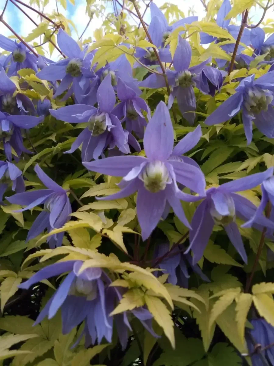Клематис сорта *Stolwijk Gold* пленяет взор роскошью золотисто-жёлтых цветков, сияющих среди густой зелени лианоподобных стеблей. Его крупные листья состоят из трёх яйцевидных листочков, покрытых нежной бархатистостью, придающей растению изысканный шарм. Цветки диаметром около десяти сантиметров раскрываются во всей своей красоте летом, демонстрируя элегантную чашечку из четырёх лепестков, плавно переходящих от насыщенного жёлтого оттенка к светлому центру. Тычинки контрастируют тёмно-коричневыми оттенками, подчёркивая благородство цветка. Этот сорт отличается энергичным ростом, легко взбираясь вверх по опорам благодаря своим цепким усикам, украшая собой беседки, перголы и стены зданий. Растёт быстро, предпочитает солнечные места и плодородную почву, радуя садоводов продолжительным периодом цветения и способностью украшать пространство яркими солнечными красками.