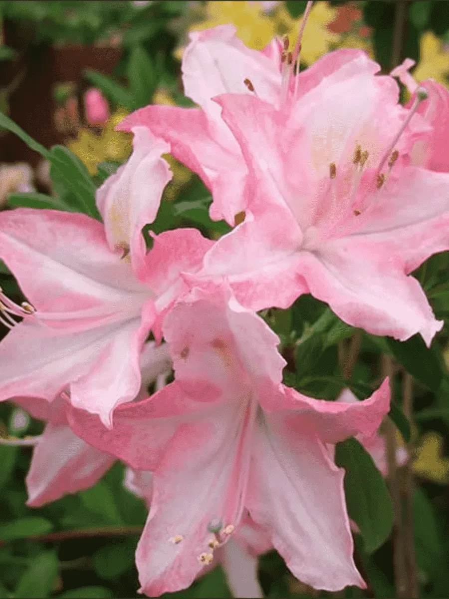 Азалия крупноцветковая *Jolie Madame* пленяет взор изысканным очарованием своего цветения и утончённой красотой листвы. Это вечнозелёный кустарник высотой до полутора метров, обладающий густой кроной и элегантной формой ветвей. Листья небольшие, овальные, тёмно-зелёные сверху и слегка серебристые снизу, гладко блестящие, словно покрытые тонким слоем воска. Цветки крупные, диаметром около восьми сантиметров, собраны в пышные соцветия, распускаются ранней весной, наполняя сад нежностью и ароматом. Лепестки бархатисто-розовые, иногда с лёгким пурпурным оттенком, края волнистые, придающие цветкам особую воздушность и хрупкость. Растёт азалия медленно, предпочитая полутень и влажную плодородную почву, распространена преимущественно в садах умеренного климата Европы и Северной Америки, где её ценят за декоративность и способность создавать атмосферу романтического уюта и гармонии.