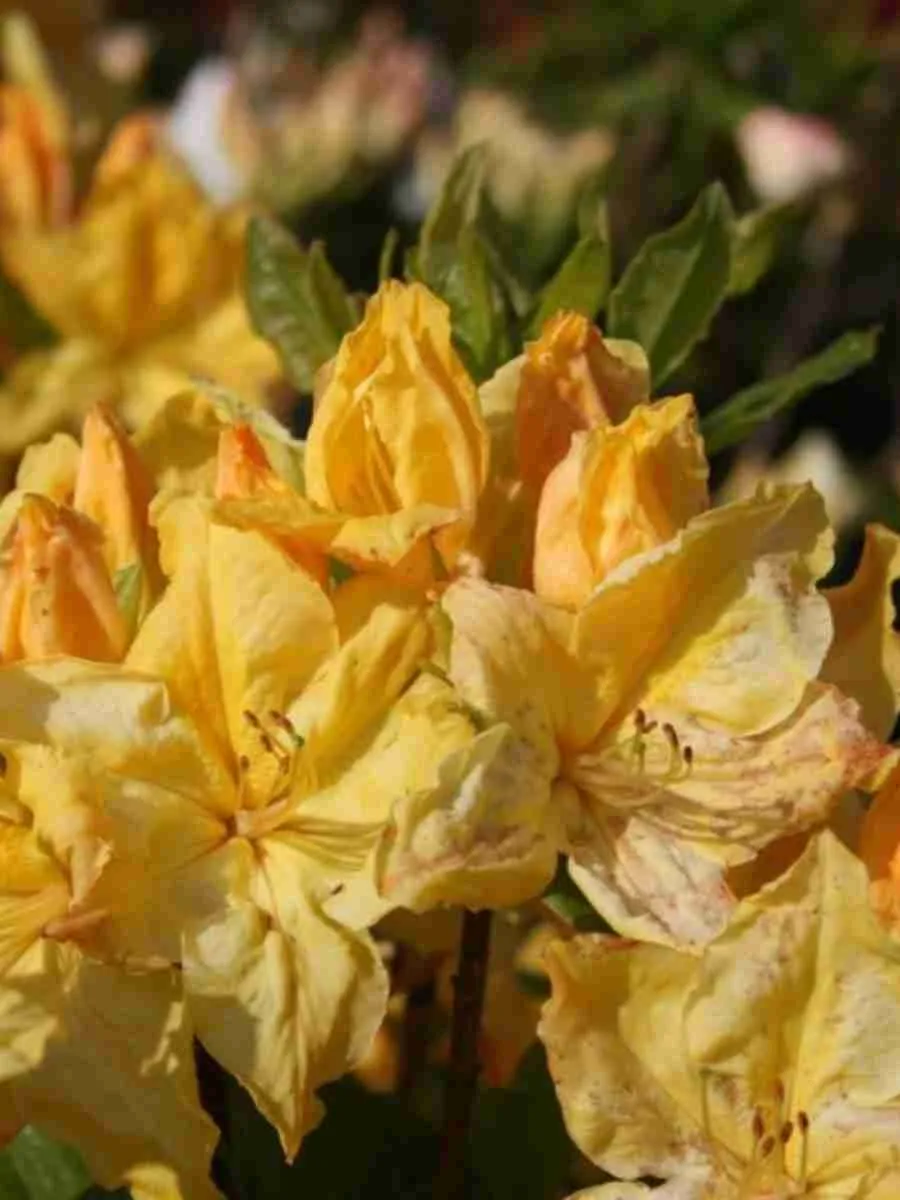 Азалия *Windsor Sunbeam* пленяет взор своей изысканной красотой и нежностью форм. Это компактный вечнозелёный кустарник высотой до полуметра, обладающий густой кроной и аккуратной округлой формой. Листья небольшие, овальные, тёмно-зелёные сверху и слегка серебристые снизу, гладко блестящие, словно покрытые тонким слоем воска. Цветёт растение обильно и продолжительно, покрываясь крупными яркими цветами диаметром около пяти сантиметров. Лепестки цветков нежно-кремовые с золотистым оттенком, иногда украшенные лёгким розовым румянцем, создавая впечатление мягкого солнечного света, играющего среди зелени листвы. Бутоны раскрываются постепенно, наполняя пространство вокруг ароматом свежести и чистоты. Растение предпочитает полутень и влажную почву, прекрасно адаптируется к умеренному климату и широко используется в ландшафтном дизайне благодаря своему декоративному виду и неприхотливости в уходе.
