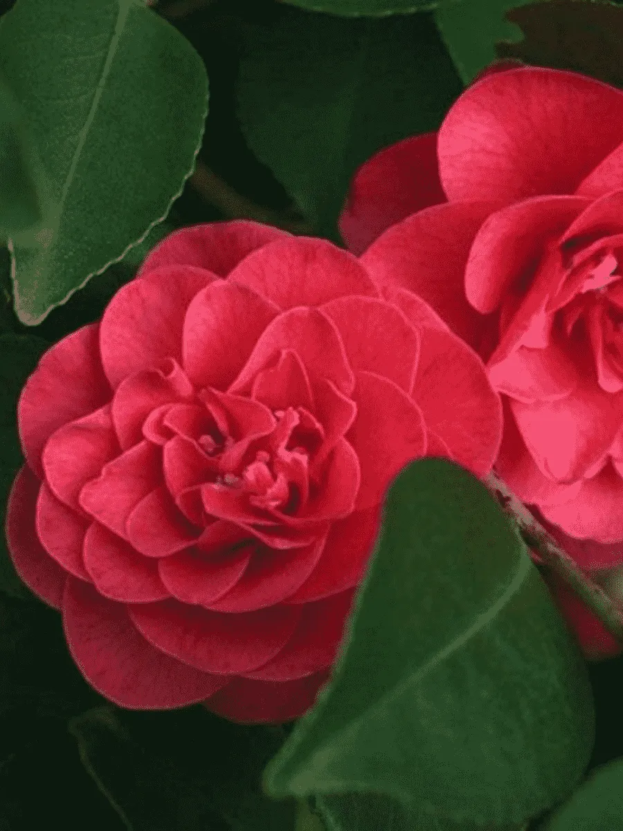 Камелия японская 'Lady Campbell' — изысканное вечнозелёное дерево или кустарник высотой до трёх метров, поражающее своей благородной красотой и элегантностью форм. Листья крупные, тёмно-зелёные, блестящие, овально-ланцетные, слегка волнистые по краю, словно отполированные природой до зеркального блеска. Цветки распускаются поздней осенью или зимой, радуя глаз нежными оттенками розового цвета, переходящими от светлых пастельных тонов к насыщенным пурпурным крапинкам и штрихам, создавая впечатление живописного полотна. Бутоны раскрываются медленно, демонстрируя совершенство формы и симметрию лепестков, источающих тонкий аромат свежести и чистоты. Растёт медленно, предпочитая полутень и влажную плодородную почву, распространено преимущественно в садах умеренного климата Европы и Северной Америки, где становится украшением зимнего пейзажа, подчёркивая утончённость японского стиля садоводства.