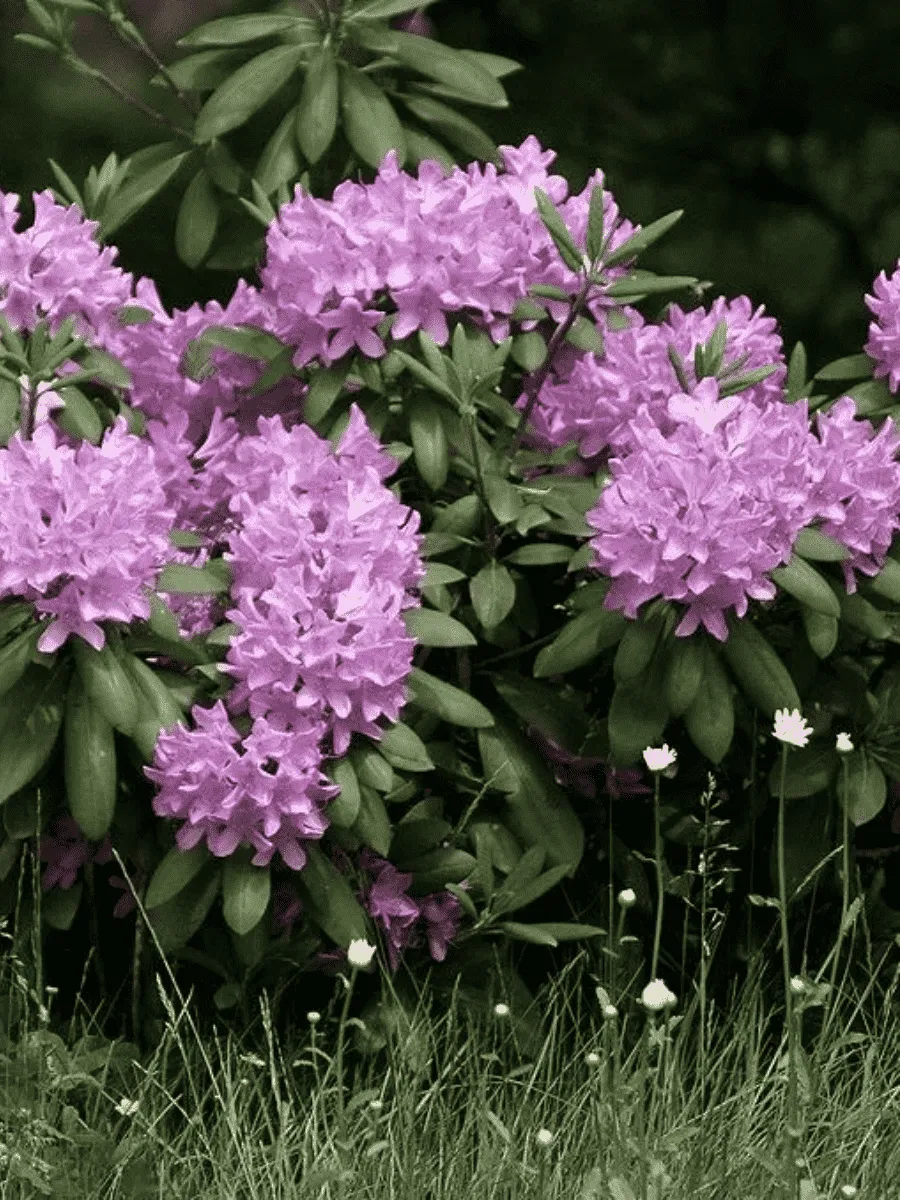 Рододендрон катевбинский (Rhododendron catawbiense) — вечнозелёный кустарник благородной красоты, достигающий высоты от полутора до трёх метров, обладающий густой кроной и раскидистыми ветвями, покрытыми тёмно-зелёными кожистыми листьями эллиптической формы с блестящей поверхностью и слегка загнутыми краями. Весной растение покрывается крупными соцветиями, состоящими из многочисленных воронковидных цветков диаметром около пяти сантиметров, окрашенных преимущественно в пурпурно-розовые оттенки с лёгким фиолетовым оттенком и украшенных мелкими пятнами внутри венчика. Цветение продолжается несколько недель, наполняя воздух тонким ароматом и создавая живописную картину среди тенистых лесов Северной Америки, где рододендрон предпочитает прохладные влажные места с кислой почвой, защищённые от яркого солнца и сильных ветров.