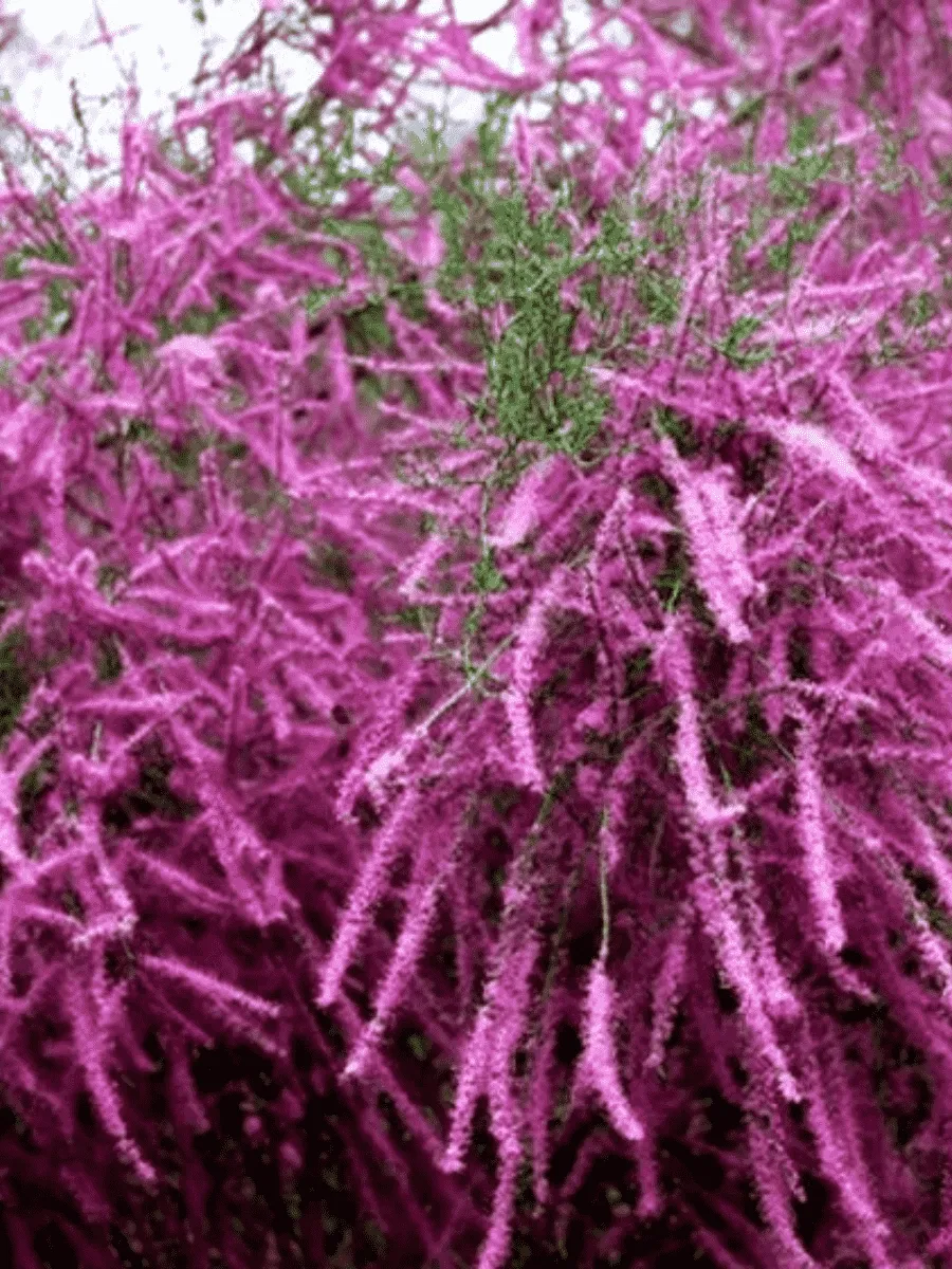 Тамарикс ветвистый Rubra (Tamarix ramosissima cv. 'Rubra') — изящная древесная культура, поражающая своей воздушностью и нежной красотой. Это кустарник средней высоты до трёх метров, обладающий тонкими ветвями, покрытыми мелкими чешуевидными листьями изумрудно-зелёного оттенка, придающими растению лёгкость и прозрачность. Особенность сорта заключается в роскошном пурпурно-розовом цветении, которое начинается ранней весной и продолжается вплоть до середины лета. Мелкие цветки собраны в длинные пушистые кисти, украшающие каждую веточку словно кружево, создавая впечатление облачного покрова над кустом. Растёт быстро, легко адаптируется к различным условиям среды, предпочитая солнечные места и сухие почвы, распространён преимущественно в степях и полупустынях юга России и Средней Азии. Благодаря своему декоративному виду и неприхотливости тамарикс Рубра широко используется в ландшафтном дизайне парков и садов, где становится настоящим украшением пространства, наполняя его утончённой природной гармонией.