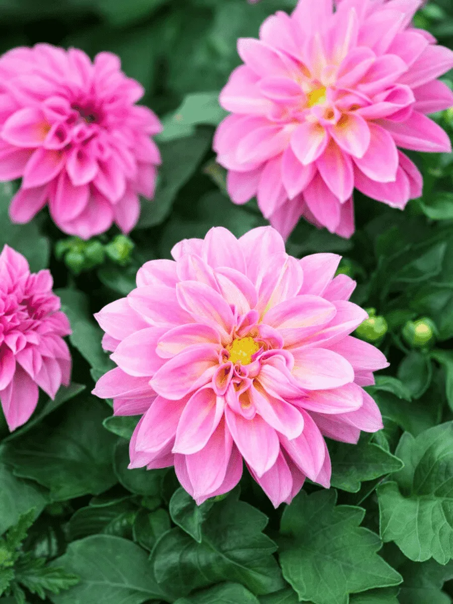 Георгин Dahlietta Select Emily очаровывает своей утончённой красотой и элегантностью форм. Это компактное растение высотой около полуметра обладает прямостоячими крепкими стеблями, покрытыми тёмно-зелёной листвой насыщенного оттенка. Листья крупные, рассечённые, слегка волнистые по краям, придают кусту пышность и воздушную лёгкость. Цветки махровые, диаметром до десяти сантиметров, состоят из множества узких лепестков, собранных в плотные соцветия шаровидной формы. Окраска цветков варьируется от нежнейшего персиково-розового до глубокого кораллово-оранжевого тона, создавая впечатление мягкого сияния на фоне зелени. Период цветения продолжительный, начинается в середине лета и длится до первых заморозков, украшая сад яркими красками осени. Растёт георгин быстро, легко размножается клубнями и прекрасно адаптируется к различным условиям выращивания, предпочитая солнечные места и плодородные почвы.