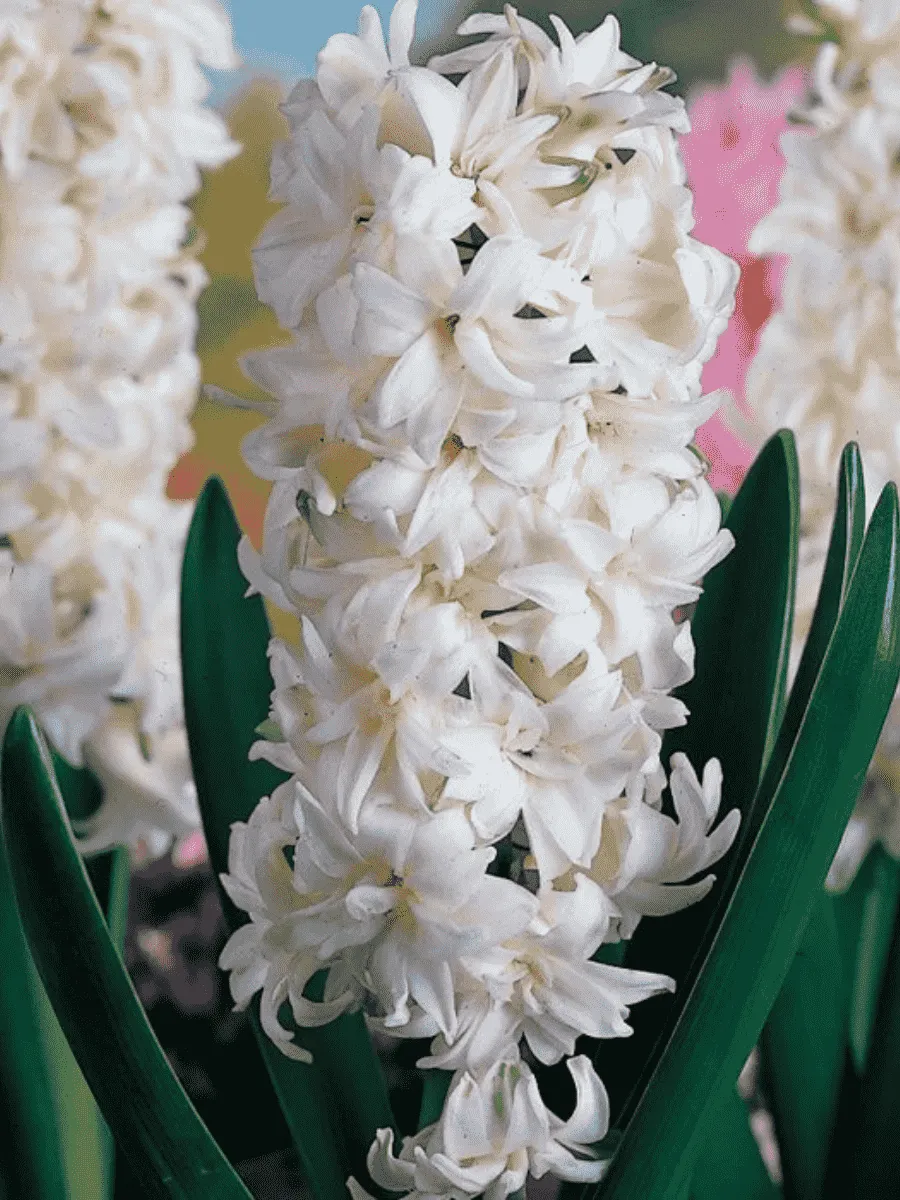 Гиацинт сорта *Madame Sophie* пленяет взор своей утончённой красотой и благородством форм. Листья длинные, узколанцетные, насыщенно-зелёного цвета, слегка блестящие, образуют плотную прикорневую розетку, подчёркивая стройность стебля. Цветонос прямой, крепкий, высотой около тридцати сантиметров, увенчанный роскошной кистью ароматных цветков. Бутоны раскрываются постепенно снизу вверх, создавая эффект постепенного раскрытия волшебного букета. Лепестки цветка нежнейшие, шелковисто-белые, с едва уловимым кремовым оттенком, края лепестков волнистые, словно кружево, придают соцветию особую воздушность и лёгкость. Аромат гиацинта тонкий, сладко-пряный, наполняющий пространство изысканным благоуханием весны. Растёт преимущественно в садах и парках умеренной зоны, предпочитая солнечные места с плодородной почвой, легко размножается луковицами, радуя садоводов ежегодным пышным цветением.