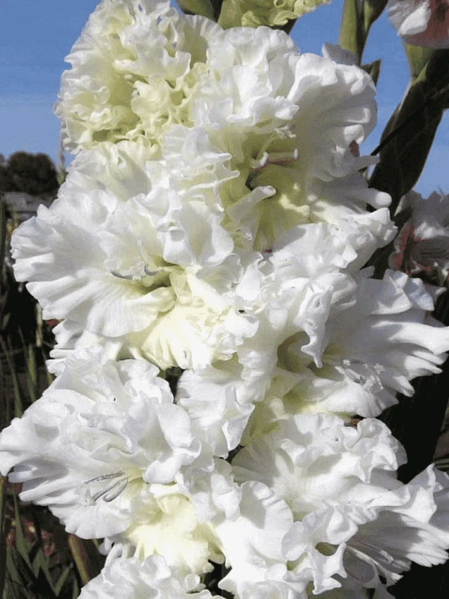 Гладиолус *Octopus* пленяет взор своей изысканной красотой и утончённостью форм. Высокий стройный стебель достигает полутора метров высоты, увенчанный роскошной кистью крупных цветков, расположенных каскадом один над другим. Лепестки цветов нежнейшие, волнистые, словно кружевные складки морского существа, от которого растение получило своё название. Окраска лепестков варьируется от нежно-кремовых до насыщенно-жёлтых оттенков, иногда украшенных тонкими штрихами тёмно-коричневого цвета, придающими особую глубину и загадочность облику цветка. Листья узколинейные, длинные и тонкие, ярко-зелёного оттенка, образуют пышную прикорневую розетку, подчёркивая грациозность всего растения. Цветёт гладиолус *Octopus* продолжительно, радуя глаз яркими красками с конца лета до первых осенних холодов. Предпочитает солнечные места и плодородные почвы, легко размножается клубнелуковицами, ежегодно обновляя свою красоту и очарование.