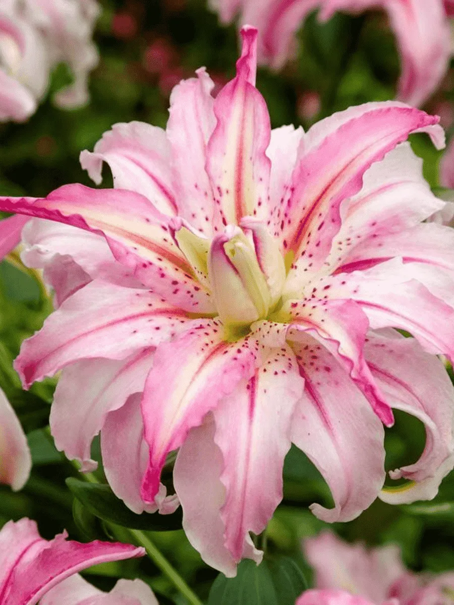Лилия *Broken Heart* (*Lotus Elegance*) пленяет взор изысканным сочетанием нежности и благородства форм. Её листья узколанцетной формы, гладко очерченные, насыщенно-зелёного цвета, словно покрытые тонким слоем воскового блеска, создают гармоничную оправу для роскошных цветков. Бутоны раскрываются постепенно, демонстрируя крупные цветы диаметром до 15 см, обладающие утончённой формой чаши, слегка отогнутые лепестки которой украшены редким рисунком нежно-розовых штрихов на белом фоне, создавая впечатление хрупкости и одновременно величественности. Цветение начинается в середине лета и продолжается около месяца, наполняя сад ароматом, который напоминает лёгкий оттенок ванили, смешанный с едва уловимыми нотами цитрусовых. Растёт лилия вертикально, достигая высоты до одного метра, предпочитая солнечные участки с плодородной почвой и умеренным поливом. Этот сорт прекрасно адаптируется к различным климатическим условиям, радуя садоводов своей неприхотливостью и способностью ежегодно демонстрировать великолепие цветения.