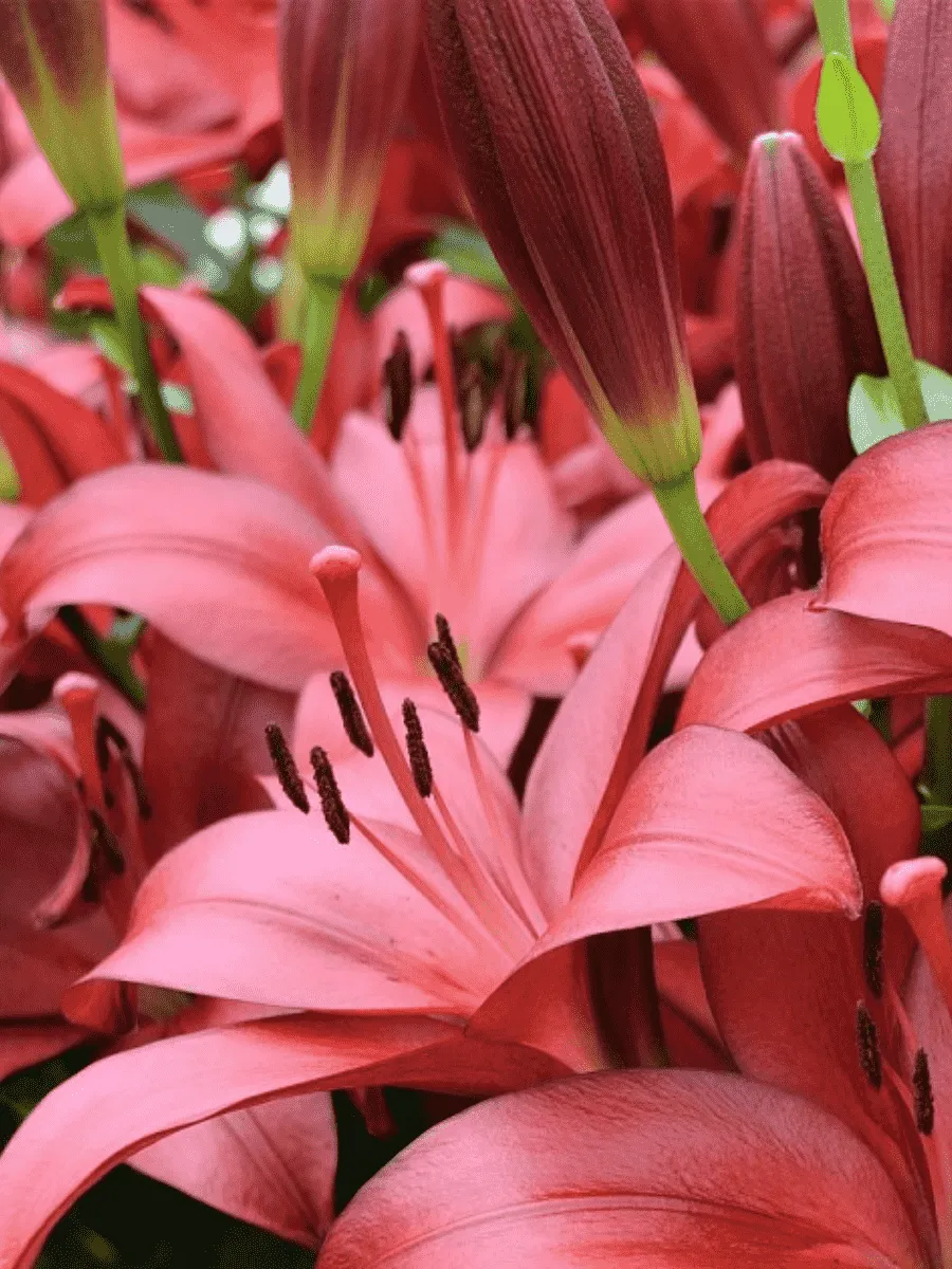 Лилия *Kamsberg* пленяет взор своей утончённой красотой и благородством форм. Стройные прямостоячие стебли высотой до полутора метров несут крупные цветки, обращённые вверх, словно раскрывшиеся чашечки драгоценной чаши. Лепестки нежно-розового оттенка плавно переходят в золотисто-жёлтые тона ближе к центру цветка, украшенные мелкими тёмно-коричневыми пятнышками, придающими особую изысканность облику. Листья ланцетовидные, гладкие, насыщенно-зелёного цвета, расположены очередно вдоль всего стебля, подчёркивая стройность и элегантность растения. Цветёт лилия *Kamsberg* продолжительно, радуя глаз яркими красками с конца июня до середины августа. Предпочитает солнечные места с плодородной рыхлой почвой, легко адаптируется к различным климатическим условиям, распространена преимущественно в горных районах Центральной Азии, где её нежная красота гармонично вписывается в суровый пейзаж высокогорий.