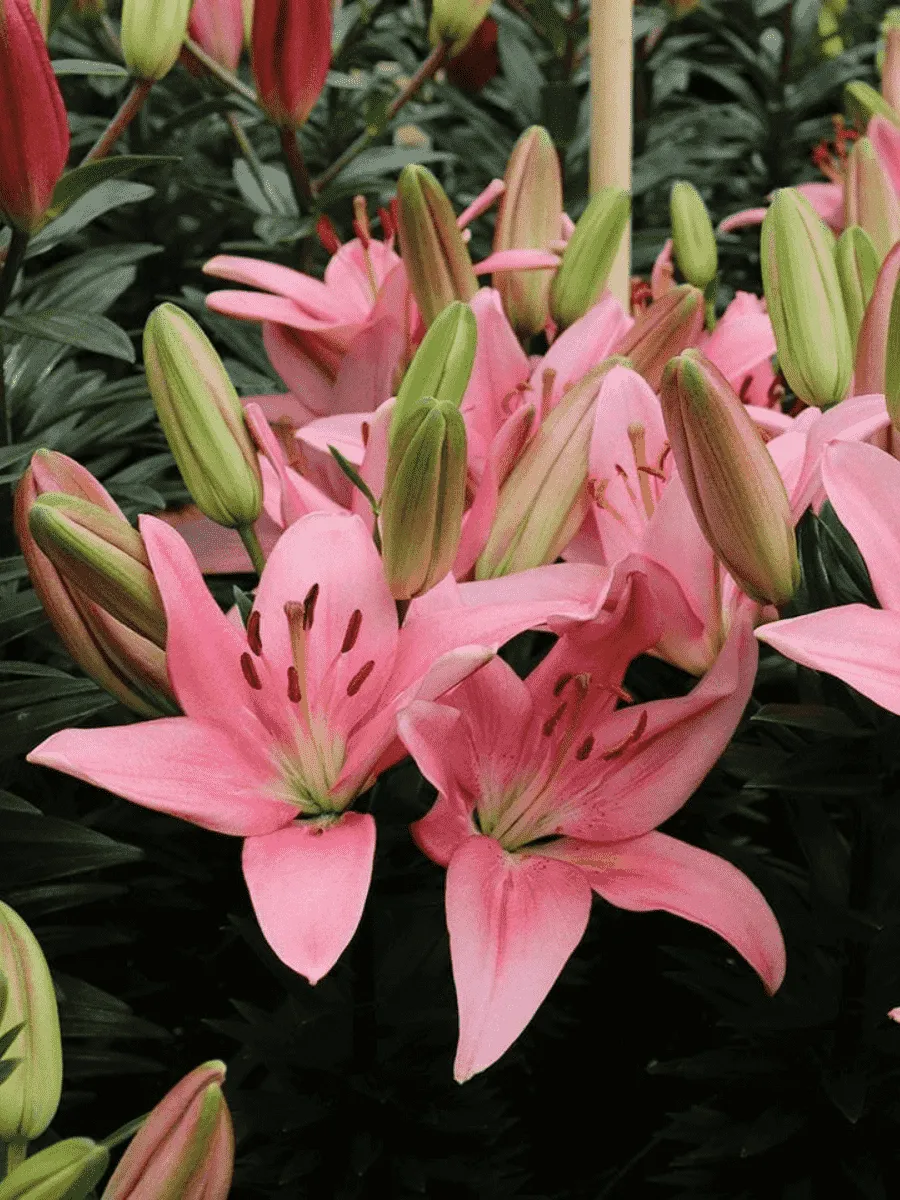 Лилия сорта *Trendy San Francisco* пленяет взор изысканным сочетанием нежности и благородства форм. Её стройные стебли достигают высоты до одного метра, увенчанные крупными цветами диаметром около двадцати сантиметров. Лепестки нежно-розового оттенка украшены золотистыми штрихами и пятнами, создавая впечатление утончённой живописной росписи. Листья ланцетовидные, тёмно-зелёные, гладко блестящие, расположены вдоль всего стебля, подчёркивая грациозность облика растения. Цветёт лилия обильно и продолжительно, начиная с июля и заканчивая сентябрём, наполняя сад тонким ароматом и очарованием экзотической красоты. Предпочитает солнечные места с плодородной рыхлой почвой, легко адаптируется к различным климатическим условиям, демонстрируя свою неприхотливость и способность радовать садоводов долгие годы.