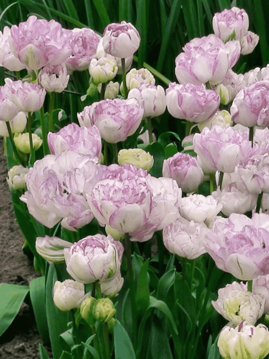 Тюльпан махровый *Normandie* пленяет взор своей изысканной красотой и благородством форм. Высокий стройный стебель венчается роскошной чашевидной формой цветка, состоящей из многочисленных лепестков нежнейшего розово-кремового оттенка, плавно переходящего в золотисто-жёлтые тона ближе к центру бутона. Листья удлинённые, гладкие, насыщенно-зелёного цвета, слегка блестящие, подчёркивающие элегантность всего облика растения. Цветёт тюльпан обильно и продолжительно, радуя глаз яркими красками ранней весной, когда природа ещё только просыпается от зимнего сна. Предпочитает солнечные места с плодородной рыхлой почвой, легко адаптируется к различным климатическим условиям умеренной зоны, распространён преимущественно в садах и парковых ансамблях Европы и России, где становится украшением весенних композиций и символом возрождения природы после долгой зимы.