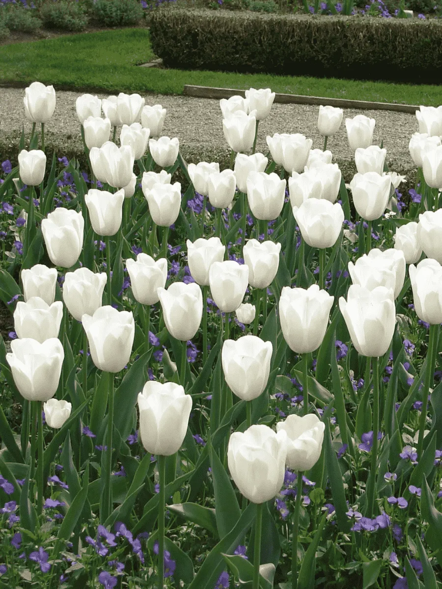 Тюльпан ранний *White Prince* пленяет своей изысканной простотой и благородством форм. Его крепкий стебель высотой около сорока сантиметров увенчан крупными одиночными цветами идеальной чашевидной формы, словно вылепленными искусной рукой мастера. Лепестки цветка белоснежные, слегка отливающие перламутром, создавая впечатление нежности и чистоты. Листья удлинённые, гладкие, насыщенно-зелёного цвета, подчёркивающие элегантность соцветия. Цветёт растение рано весной, радуя глаз первыми лучами солнца после долгой зимы. Предпочитает солнечные места с плодородной почвой, легко адаптируется к различным климатическим условиям, распространён преимущественно в садах и парковых зонах умеренного пояса Европы и Азии.