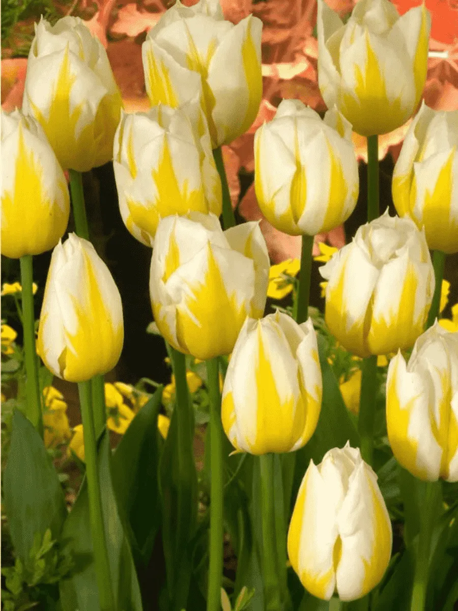 Тюльпан триумф Flaming Coquette очаровывает своей утончённой красотой и элегантностью форм. Его крупные цветки раскрываются широкими чашевидными лепестками нежной кремово-белой окраски, украшенными яркими алыми мазками, словно лёгкий румянец утренней зари. Листья удлинённые, гладкие, насыщенно-зелёного цвета, подчёркивающие стройность стебля высотой около полуметра. Цветёт растение ранней весной, наполняя сад изысканным ароматом и радуя глаз живописной игрой оттенков. Этот сорт предпочитает солнечные участки с плодородной почвой, легко адаптируется к различным климатическим условиям и широко используется в ландшафтном дизайне благодаря своему декоративному виду и длительному сохранению свежести срезанных цветов.