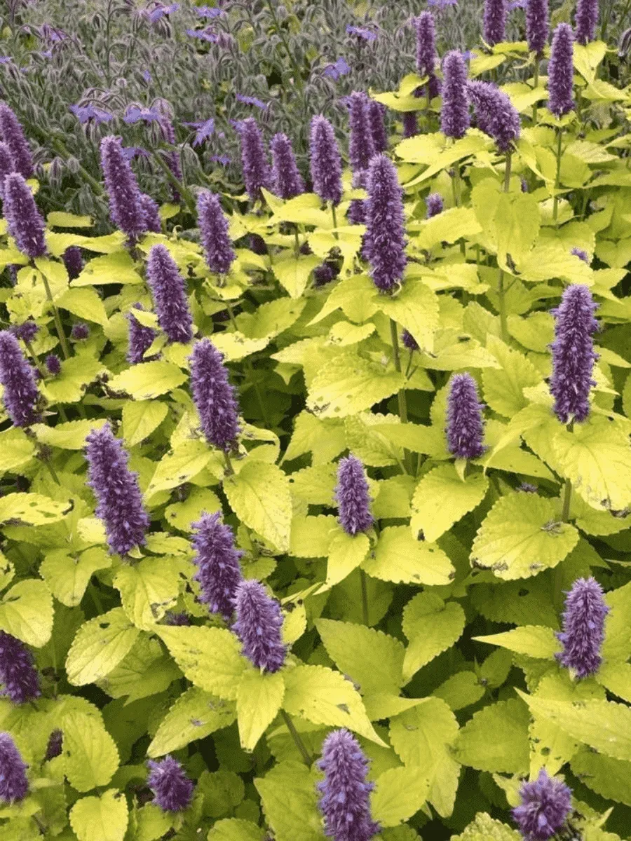 Агастахис анисовый Золотой Юбилей — изысканное многолетнее растение семейства Яснотковые (Lamiaceae), покоряющее сердца садоводов своей декоративностью и ароматом. Прямоугольные стебли высотой до метра украшены крупными овально-ланцетными листьями насыщенного золотисто-жёлтого цвета, словно солнечные лучи застряли среди зелени сада. Листья слегка волнистые по краям, бархатистые на ощупь, источают тонкий аромат аниса, усиливающийся после дождя или лёгкого прикосновения. Цветёт агастахис обильно и продолжительно, начиная с июля и заканчивая первыми заморозками, покрываясь многочисленными колосовидными соцветиями нежно-лилового оттенка, состоящими из множества мелких трубчатых цветков. Эти яркие свечи привлекают внимание бабочек и пчёл, создавая атмосферу праздника и гармонии в саду. Растение предпочитает хорошо дренированные почвы и солнечное местоположение, легко адаптируется к различным климатическим условиям, становясь украшением любого участка благодаря своему яркому облику и приятному благоуханию.