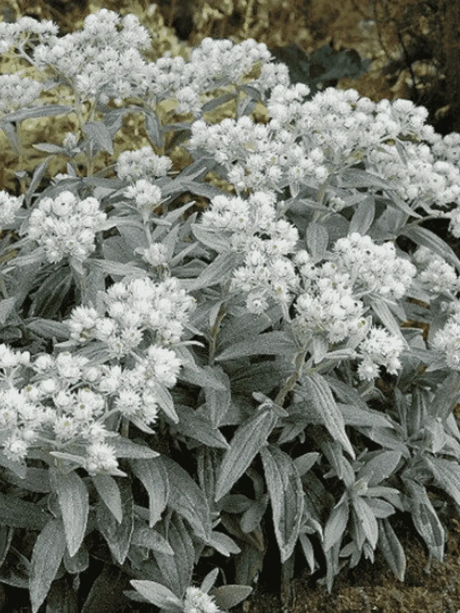 Анафалис трёхжилковый (Anaphalis triplinervis) — многолетнее травянистое растение семейства астровых, покорившее сердца садоводов своей нежной красотой и неприхотливостью. Стройные прямостоячие стебли высотой до полуметра украшены узкими серебристо-серыми листьями, словно покрытыми тонким слоем бархата. Листья линейно-ланцетные, слегка загнутые книзу, придают растению особую воздушность и лёгкость. Цветёт анафалис пышными белыми соцветиями-корзинками диаметром около сантиметра, собранными в рыхлые щитковидные метёлки. Эти миниатюрные цветы напоминают крошечные звёздочки, мерцание которых особенно заметно вечером и утром, когда солнечные лучи мягко касаются лепестков. Растение предпочитает сухие каменистые почвы, хорошо освещённые участки, легко переносит засуху и морозы, благодаря чему широко используется в альпинариях, рокариях и миксбордерах, создавая эффектную белоснежную дымку среди камней и цветов.