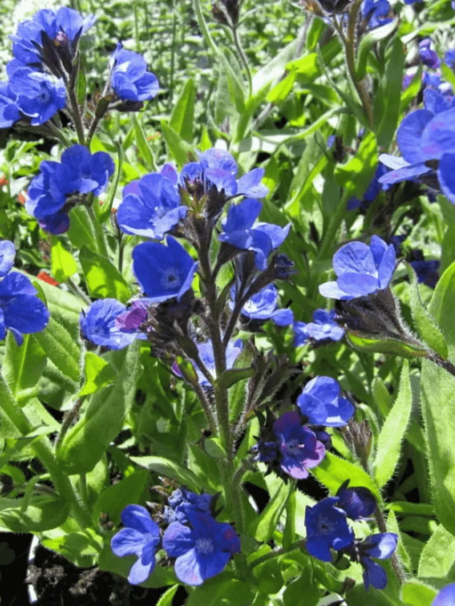 Анхуза итальянская сорта *Loddon Royalist* пленяет взор своей изысканной красотой и благородством форм. Это многолетнее растение достигает высоты около полуметра, обладая прямостоячими крепкими стеблями, покрытыми крупными овальными листьями насыщенного зелёного цвета с лёгким серебристым отливом. Листья плотные, слегка морщинистые, словно бархатная ткань, придают растению особую декоративность даже вне периода цветения. Но истинную славу анхуза приобретает благодаря своим роскошным соцветиям — густым кистям крупных цветков глубокого сине-фиолетового оттенка, украшенных нежной белой каёмкой по краям лепестков. Цветки раскрываются постепенно снизу вверх, создавая эффект непрерывности цветения с июня до сентября. Растёт анхуза быстро, легко размножается самосевом, формируя живописные группы на солнечных участках сада, где её красота особенно ярко проявляется среди зелени газонов и декоративных кустарников.