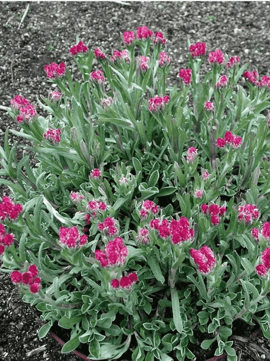 Антеннария двудомная сорта *Bright Red* — очаровательное травянистое растение семейства Астровых (Asteraceae), покоряющее сердца садоводов своей нежностью и утончённостью. Это компактный многолетник высотой до 15–20 см, обладающий густым ковром мелких серебристо-зелёных листочков, покрытых мягким пушком, придающим растению бархатистый облик. Листья имеют яйцевидную форму и слегка зазубренные края, создавая впечатление миниатюрной лесной поляны. Цветёт антеннария обильно мелкими корзинками цветков, собранными в плотные соцветия, окрашивающимися в яркие оттенки красного цвета, от розово-красного до насыщенно-алого, словно искры пламени среди зелени. Растение предпочитает солнечные места и хорошо дренированные почвы, легко адаптируется к различным условиям выращивания, устойчиво к засухе и морозоустойчиво. Благодаря своим декоративным качествам и неприхотливости, антеннария широко используется в альпинариях, рокариях и миксбордерах, украшая сады изысканным шармом природы.