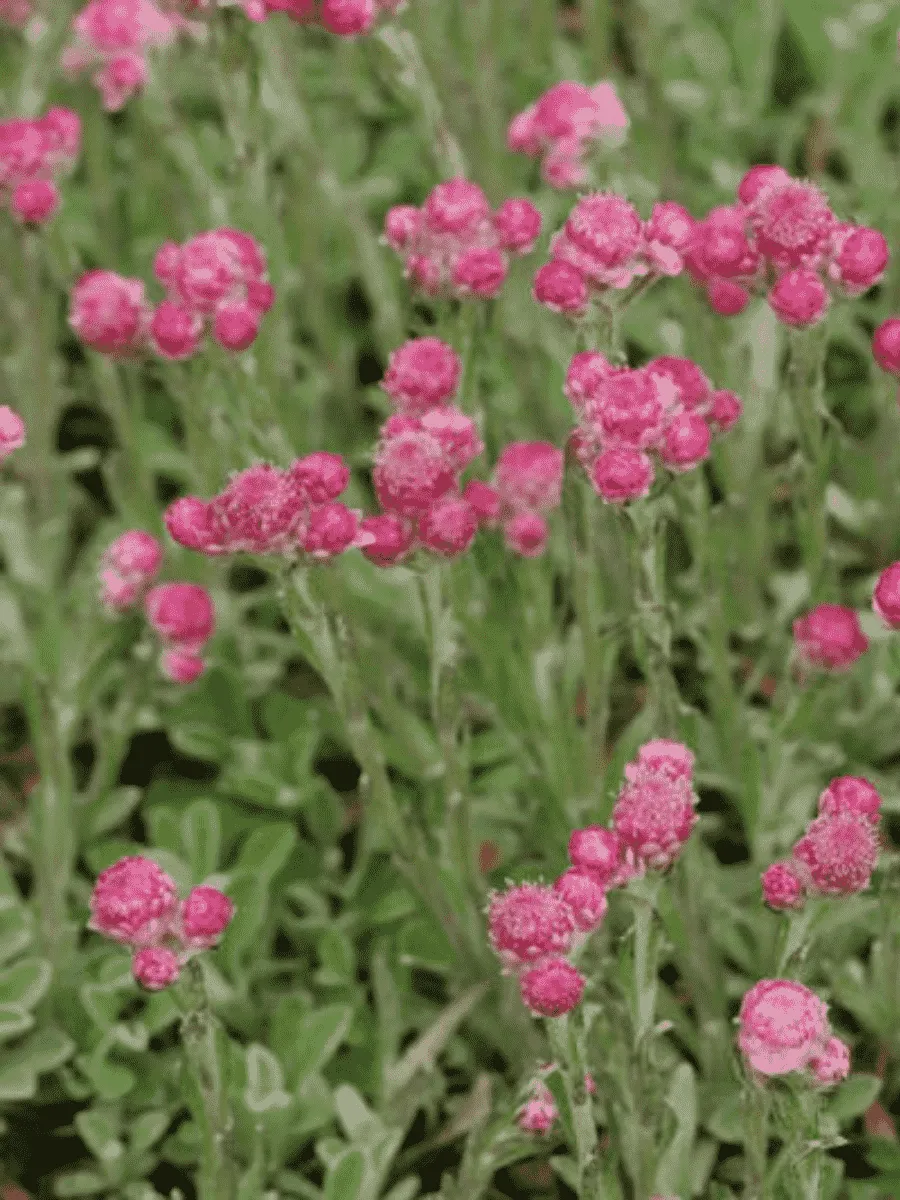 Антеннария двудомная сорта *Bright Rose* — очаровательное травянистое растение семейства Астровых (Asteraceae), покоряющее сердца садоводов нежностью своего облика и неприхотливостью ухода. Это компактный многолетник высотой до 15–20 см, формирующий плотную куртинку густо покрытых мелкими листьями стеблей. Листья овально-ланцетной формы, слегка пушистые, серовато-зелёного оттенка, придающие растению бархатистый шарм. Цветёт обильно и продолжительно, начиная с конца весны и вплоть до середины лета, покрываясь множеством мелких корзинок цветков нежно-розового цвета, словно миниатюрные розочки, украшающие зелёный ковёр. Благодаря своей способности легко разрастаться и укореняться даже в сложных условиях, антеннария идеально подходит для оформления альпийских горок, рокариев и бордюров, создавая живописные композиции и привлекая внимание своим мягким очарованием.