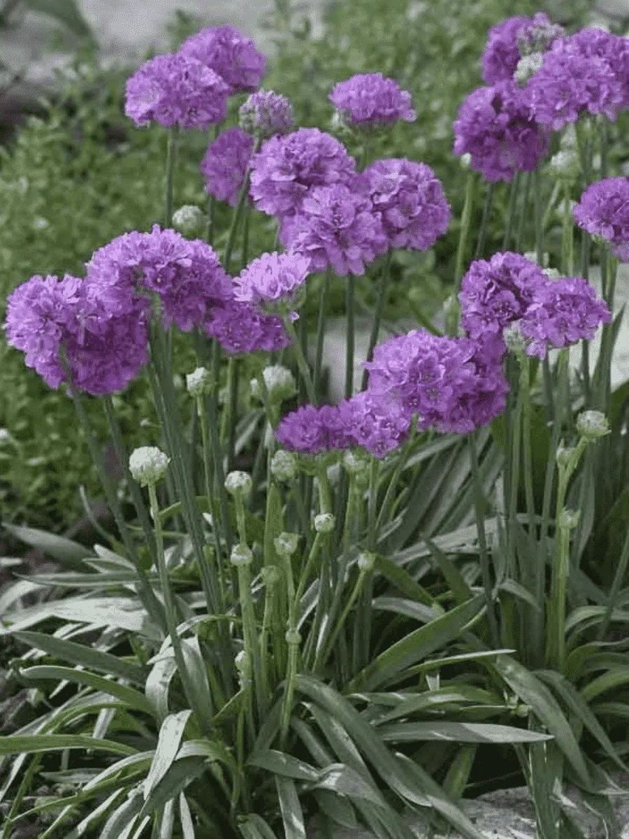 Армерия ложноармерия сорта *Ballerina Lilac* пленяет взор нежностью пастельных оттенков и утончённой грацией своего облика. Это компактное травянистое растение высотой около 15–25 см образует плотную округлую розетку узких линейных листочков тёмно-зелёной окраски, слегка восковых на ощупь и придающих кустику особую декоративность даже вне периода цветения. Но истинная красота раскрывается весной и летом, когда над лиственной массой появляются многочисленные тонкие стебли, увенчанные пышными шаровидными соцветиями нежно-лилового цвета, словно миниатюрные букеты воздушных шариков. Цветки мелкие, трубчатые, собраны в густые головки диаметром до 4 см, источающие едва уловимый аромат. Растёт армерия медленно, предпочитая солнечные места и хорошо дренированные почвы, легко переносит засуху и морозы, создавая живописные ковры на альпийских горках, каменистых садах и бордюрах.