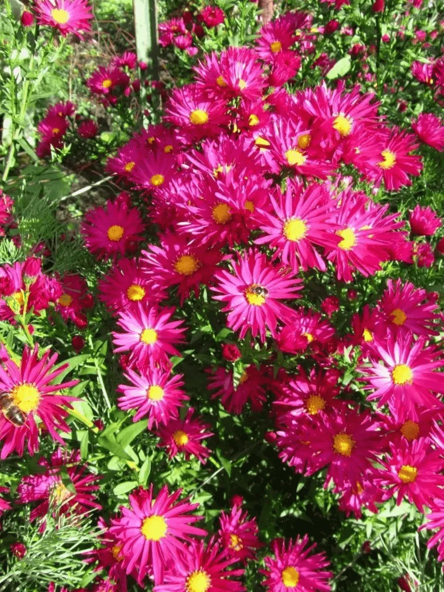 Астра ново-бельгийская сорта *Crimson Brocade* пленяет взор своей утончённой красотой и благородством форм. Это многолетнее растение достигает высоты от 60 до 100 см, формируя пышную раскидистую крону с многочисленными прямостоячими стеблями, покрытыми тёмно-зелёной листвой насыщенного оттенка. Листья продолговато-ланцетные, слегка зубчатые по краям, придают растению особую декоративность даже вне периода цветения. Но истинная прелесть раскрывается осенью, когда многочисленные соцветия-корзинки распускаются во всём великолепии своего глубокого пурпурно-красного цвета, оттенённого золотистыми серединками. Цветки крупные, диаметром около 5–7 см, собраны в рыхлые щитковидные соцветия, украшая сад вплоть до первых заморозков. Растёт быстро, предпочитает солнечные места и плодородные почвы, легко размножается делением куста и семенами, широко используется в ландшафтном дизайне благодаря своему продолжительному эффектному цветению и способности создавать яркие акценты среди осенних красок природы.