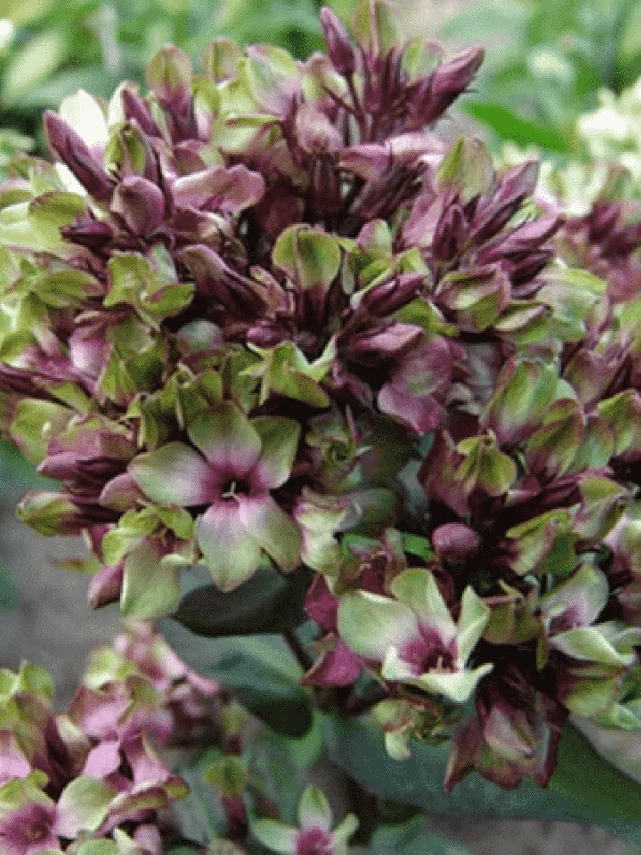 Флокс метельчатый сорта *Green Lady* пленяет взор нежной зеленью листвы и пышностью своего цветения. Это многолетнее травянистое растение образует компактные кустики высотой около полуметра, украшенные крупными перистыми листьями насыщенного изумрудного оттенка, слегка гофрированными по краям и покрытыми тонким восковым налетом, придающим особую свежесть облику. Цветки собраны в крупные шаровидные соцветия диаметром до десяти сантиметров, состоящие из множества мелких трубчатых цветков нежно-зелёного цвета с едва заметным кремово-белым оттенком в центре лепестков. Период цветения продолжительный, начинается в июне и длится вплоть до сентября, наполняя сад ароматом сладких пряностей и создавая иллюзию зелёного облака над клумбой. Растёт быстро, легко размножается делением куста и черенкованием, предпочитает солнечные места с плодородной рыхлой почвой, устойчиво переносит умеренные заморозки и засуху, становясь украшением любого сада благодаря своей неприхотливости и декоративности.