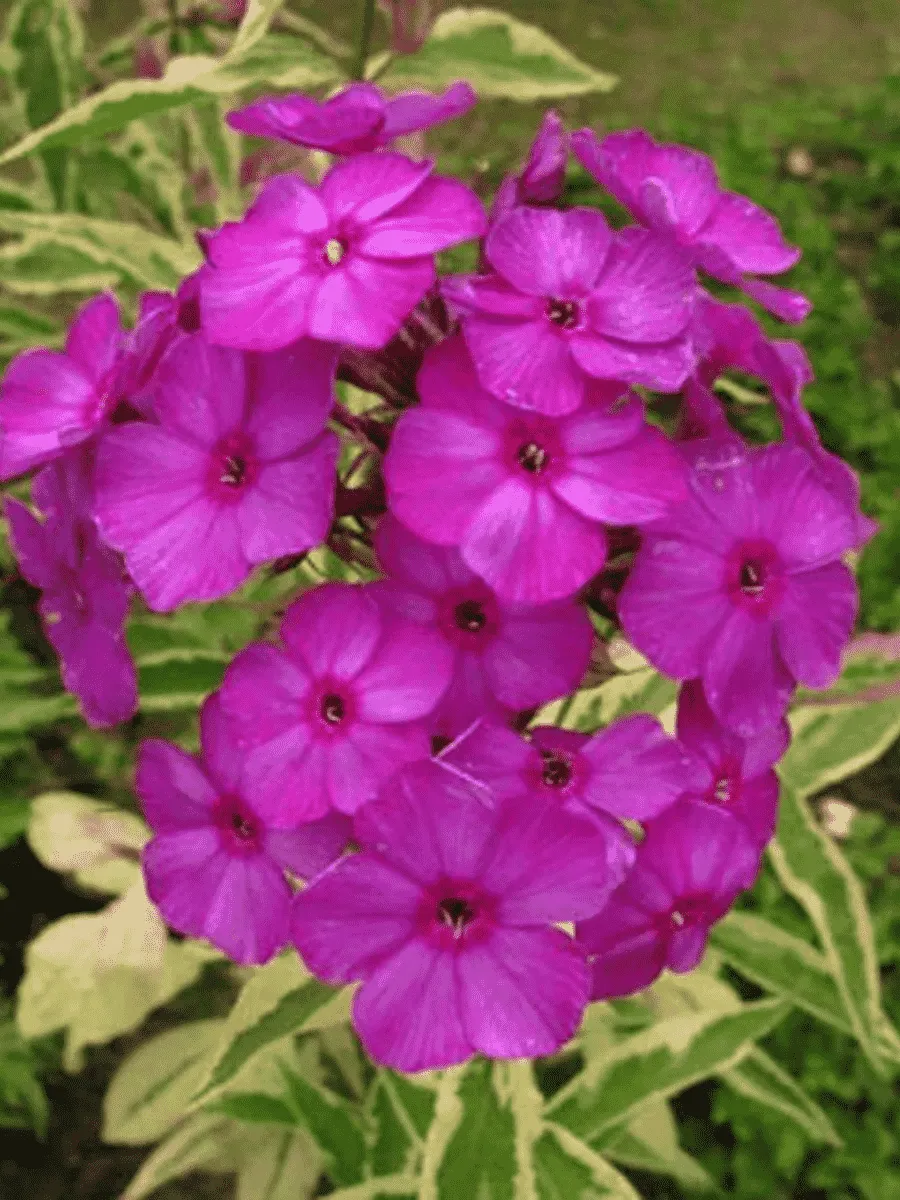 Флокс метельчатый 'Harlequin' пленяет взор своей изысканной красотой и благородством форм. Это многолетнее травянистое растение образует пышную кустистую крону высотой до полуметра, украшенную крупными тёмно-зелёными листьями ланцетной формы с глянцевой поверхностью, словно отполированными рукой мастера. Цветки собраны в густые пирамидальные соцветия-метёлки, достигающие внушительных размеров и придающие растению величественный облик. Окраска цветков поражает контрастностью и сложностью оттенков: каждый лепесток сочетает нежнейший розовый фон с яркими алыми штрихами и полосками, будто художник оставил следы кисти, создавая неповторимый рисунок. Период цветения продолжительный, начинается в июне и длится до конца лета, наполняя сад ароматом и красками, привлекающими внимание всех любителей прекрасного. Растёт быстро, легко размножается делением куста и черенкованием, прекрасно адаптируется к различным условиям выращивания, предпочитая солнечные места и плодородные почвы.