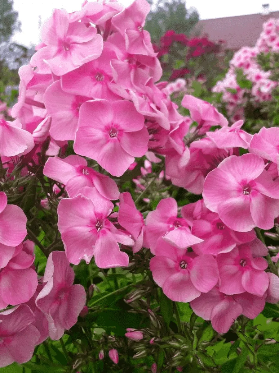 Флокс метельчатый сорта «Катенька-Катюша» пленяет взор нежностью и утончённостью своего облика. Это многолетнее травянистое растение образует пышную куртину высотой около полуметра, украшенную тёмно-зелёной листвой яйцевидной формы с лёгким блеском, словно покрытые тонким слоем утренней росы. Цветки собраны в крупные густые соцветия-метёлки, возвышающиеся над листьями подобно воздушному облаку. Лепестки цветков нежно-розового оттенка с едва заметным пурпурным отливом создают впечатление мягкого шёлкового полотна, трепещущего на ветру. Период цветения продолжительный, начинается в июне и длится до конца августа, наполняя сад ароматом сладковатых ноток ванили и мёда. Растёт флокс быстро, легко размножается делением куста и черенкованием, предпочитая солнечные места с плодородной почвой и умеренным поливом. Этот сорт прекрасно смотрится в миксбордерах, рокариях и вдоль дорожек, добавляя саду очарование и уют деревенского сада.