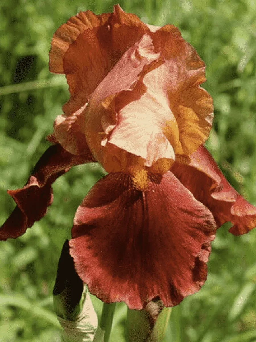 Ирис германский сорта *Natchez Trace* пленяет взор изысканной красотой крупных цветков небесной голубизны, украшенных нежнейшими белыми штрихами и переливчатыми золотистыми прожилками, словно солнечный свет застыл на лепестках. Листья узколинейные, ярко-зелёные, слегка дугообразно изгибаются от основания мощного корневища, создавая живописную зелёную кайму вокруг роскошных соцветий. Цветки распускаются поздней весной—ранним летом, возвышаясь над листвой на крепких прямостоящих стеблях высотой до метра, наполняя сад тонким ароматом свежести и чистоты. Растёт медленно, формируя плотные кустики, устойчивые к холоду и засухе, предпочитая солнечные места и плодородные почвы умеренного увлажнения. Этот благородный многолетник идеально подходит для оформления миксбордеров, рокариев и солитерных посадок, даря саду утончённую элегантность и гармонию природы.