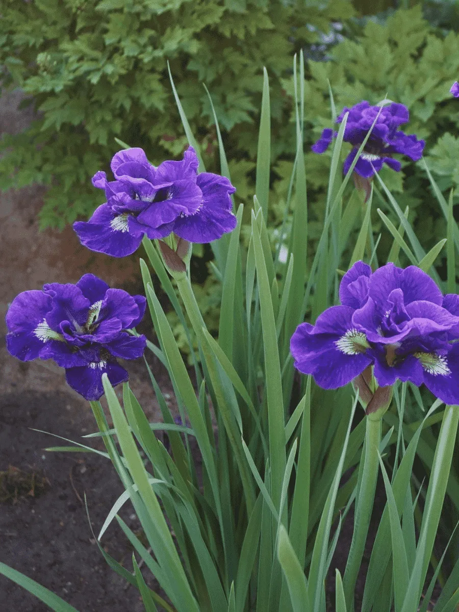 Ирис сибирский сорта *Kaboom* пленяет взор своей изысканной простотой и благородством линий. Высокий стройный стебель достигает метра высоты, увенчанный крупными эффектными цветами насыщенного сине-фиолетового оттенка с золотистыми прожилками, словно искры фейерверка, вспыхивающие среди зелени. Листья узколинейной формы, темно-зелёные, блестящие, образуют плотную прикорневую розетку, подчёркивая вертикальность соцветия. Цветки распускаются постепенно, начиная с июня и радуя глаз до конца июля, создавая живописные акценты в саду. Растение предпочитает влажные плодородные почвы, легко адаптируется к различным условиям освещения, от полутени до яркого солнца, устойчиво к холоду и неприхотливо в уходе. Этот великолепный представитель семейства ирисовых станет украшением любого сада благодаря своему элегантному облику и продолжительному периоду цветения.