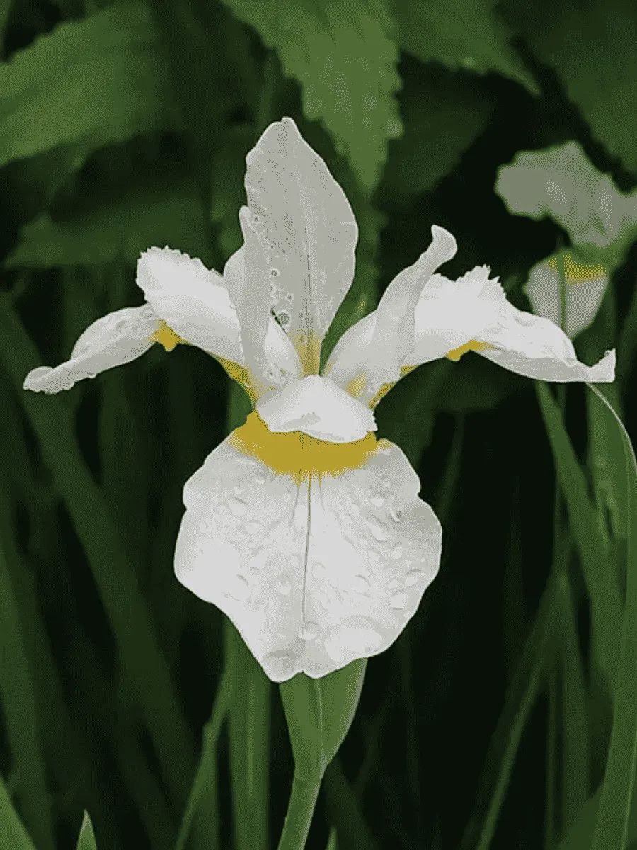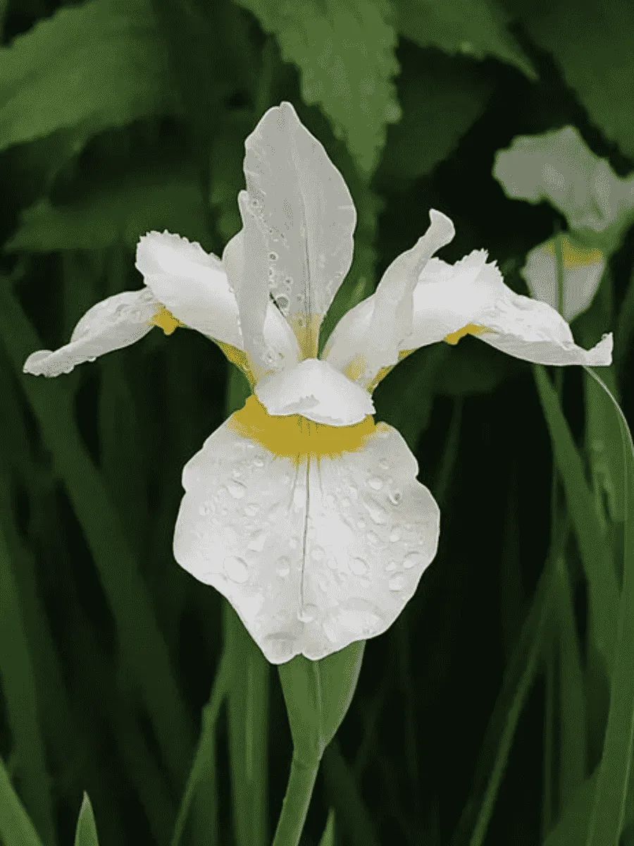 Ирис сибирский Snow Queen очаровывает своей утончённой красотой и благородством форм. Это многолетнее травянистое растение отличается стройностью и элегантностью облика. Листья узколинейные, ярко-зелёные, слегка серовато-сизые от воскового налёта, устремлены вверх подобно тонким мечам, создавая живописную композицию даже вне периода цветения. Цветоносы высокие, прочные, несут крупные цветки диаметром до 15 см, раскрывающиеся один за другим, продлевая период декоративности. Лепестки цветков белоснежные, идеально ровной окраски, бархатисто-матовые, словно покрытые нежнейшей пудрой, контрастируют с золотисто-жёлтыми бородками, придающими особую изысканность композиции цветка. Цветёт обильно и продолжительно, начиная с конца мая и заканчивая июнем-июлем, украшая сады и природные ландшафты своим воздушным великолепием. Растение неприхотливо, зимостойко, предпочитает солнечные места и умеренно влажные почвы, легко размножается вегетативно и прекрасно подходит для оформления каменистых садов, миксбордеров и природных композиций.