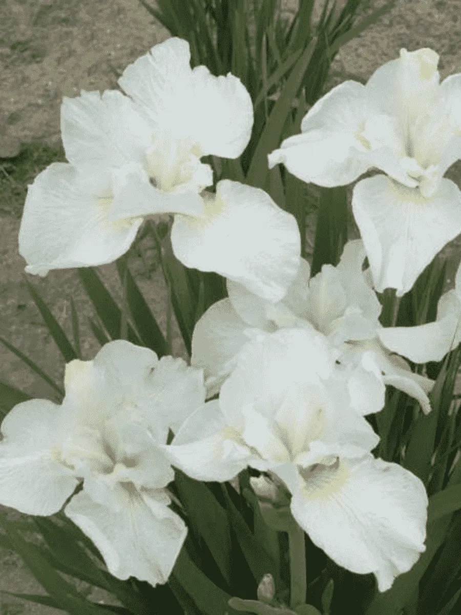 Ирис сибирский 'Swans In Flight' пленяет взор своей утончённой красотой и благородством форм. Высокие стройные стебли достигают метра высоты, увенчанные крупными цветами нежной окраски, словно парящие над изумрудной листвой белые лебеди. Листья узколинейные, ярко-зелёные, слегка дугообразно изгибаются книзу, создавая живописную композицию вокруг соцветий. Цветки крупные, диаметром до 15 см, лепестки верхних долей нежно-кремовые с едва заметным голубым оттенком, нижние доли окрашены в насыщенный синий цвет с серебристо-белым крапом, придающим особую изысканность общему облику цветка. Период цветения приходится на июнь-июль, когда растение раскрывается во всей красе, наполняя сад ароматом свежести и лёгкости. Предпочитает умеренно влажные почвы, хорошо освещённые участки, легко адаптируется к различным условиям произрастания, устойчив к болезням и зимостоек даже в суровых климатических зонах средней полосы России.