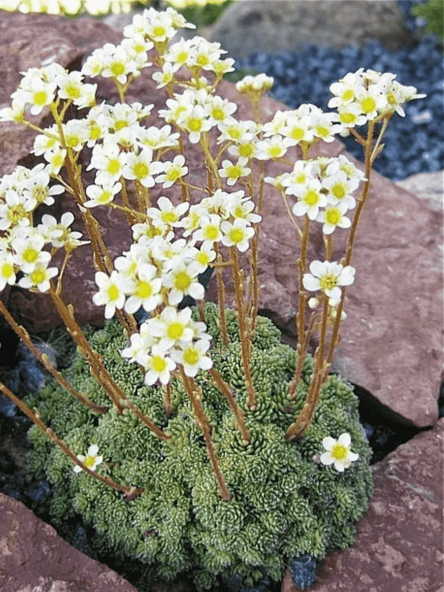 Камнеломка живучая (Saxifraga sarmentosa), словно миниатюрная зелёная звезда, украшающая каменистые склоны и садовые рокарии, пленяет взор своей нежной красотой и удивительной жизнестойкостью. Это многолетнее травянистое растение образует компактную розетку округлых мясистых листочков изумрудно-зелёного цвета, слегка волнистых по краям и покрытых тонким восковым налётом. Из центра розетки вырастают тонкие нитевидные побеги-усы, увенчанные молодыми дочерними растениями, придающие камнеломке живописный каскадный облик. Цветёт она мелкими белыми звёздочками, собранными в рыхлые зонтичные соцветия, источающие тонкий аромат свежести и чистоты горных вершин. Растение предпочитает солнечные места с хорошо дренированной почвой, легко размножается вегетативно и быстро разрастается, создавая эффектные ковровые покрытия. Благодаря своему декоративному виду и неприхотливости, камнеломка живучая стала популярной среди садоводов и ландшафтных дизайнеров, воплощая собой гармонию природы и искусства.
