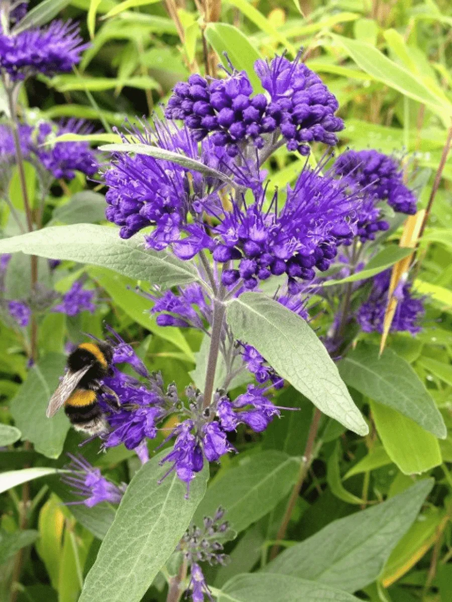 Кариоптерис кландоненсис 'Dark Knight' — элегантная кустарниковая культура родом из Китая, покоряющая сердца садоводов своей изысканной красотой и неприхотливостью. Этот компактный кустик достигает высоты около метра, обладая густой кроной и прямостоячими побегами, покрытыми мелкими овальными листьями насыщенного тёмно-зелёного цвета с лёгким серебристым отливом. Листья имеют приятную бархатистость поверхности и слегка волнистые края, создавая впечатление мягкости и нежности. Но истинной жемчужиной сорта являются цветы — густые кисти мелких цветков глубокого сине-фиолетового оттенка, словно драгоценные сапфиры, украшающие растение с конца лета до первых заморозков. Цветение настолько обильно, что кажется будто весь куст окутан дымкой благородного фиолетово-синего тона. Растёт быстро, легко адаптируется к различным условиям, предпочитая солнечные места и хорошо дренированные почвы. Благодаря своему декоративному виду и длительному периоду цветения этот сорт прекрасно подходит для украшения бордюров, миксбордеров и контейнерных композиций, добавляя саду нотки утончённости и аристократизма.