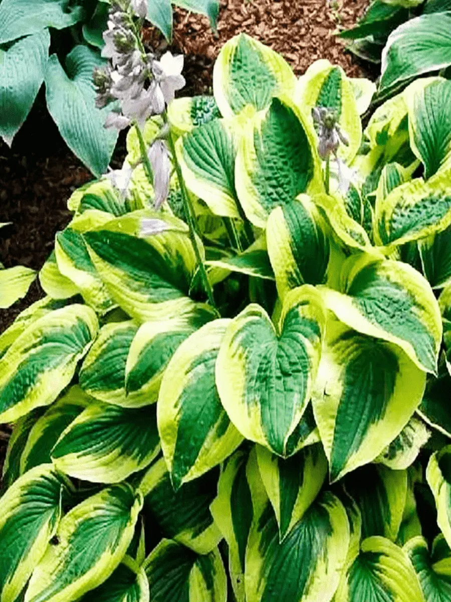 Хоста гибридная сорта *Brim Cup* пленяет взор своей изысканной красотой и благородством форм. Это многолетнее травянистое растение образует плотную розетку крупных сердцевидных листьев насыщенного зелёного цвета с широкой кремово-белой каймой, придающей листве особую декоративность и контрастность. Листья гладкие, глянцевые, слегка волнистые по краям, создают живописную композицию даже вне периода цветения. Цветоносы возвышаются над листьями, украшаясь мелкими колокольчатыми цветами нежно-фиолетового оттенка, собранными в рыхлые кисти. Высота взрослого растения достигает около полуметра, ширина розетки примерно такая же. Предпочитает полутень и влажные плодородные почвы, прекрасно адаптируется к условиям средней полосы России, где широко используется в ландшафтном дизайне благодаря своему элегантному облику и неприхотливости.