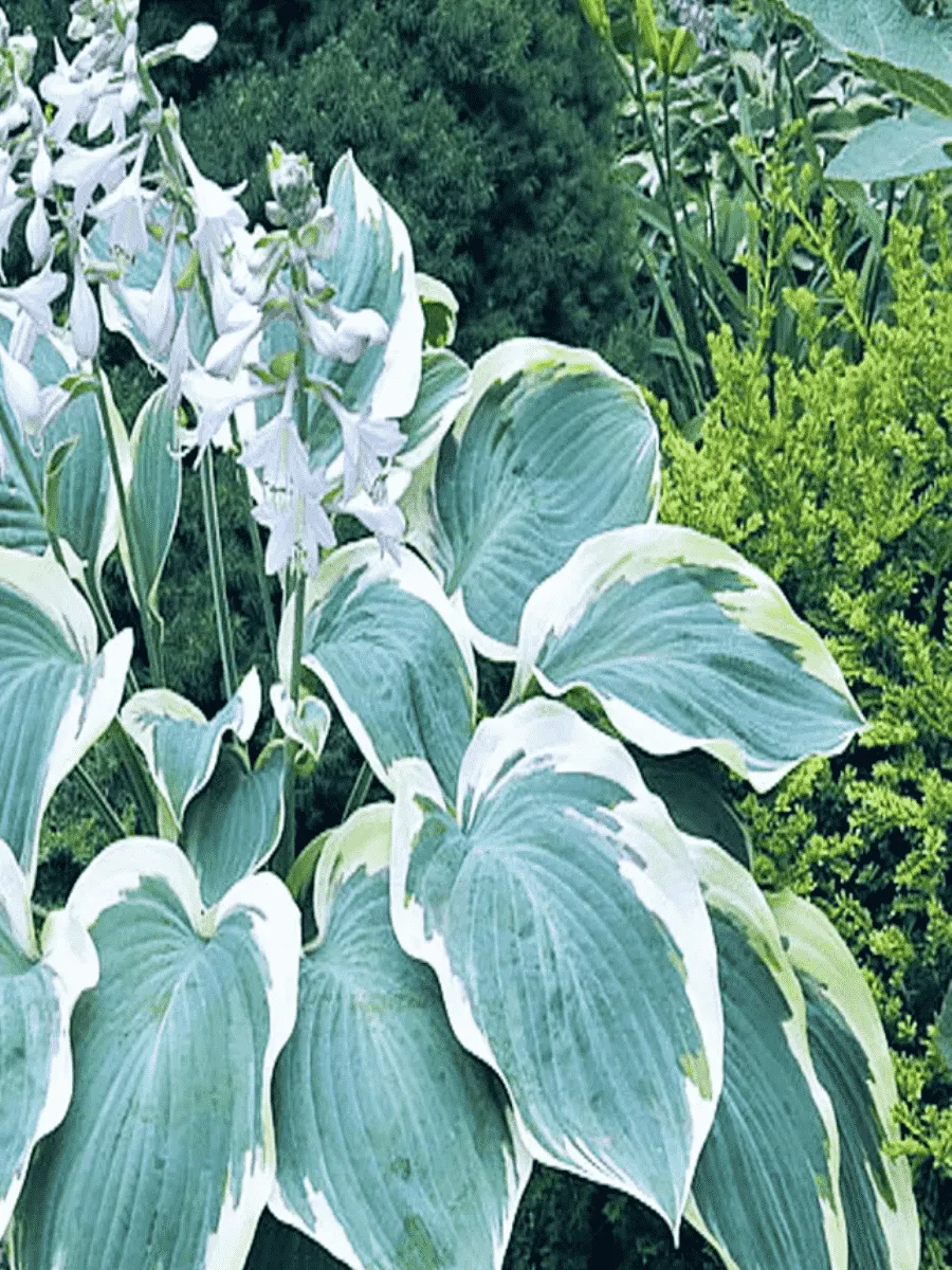 Хоста *Orion's Belt* пленяет взор своей изысканной элегантностью и благородством форм. Листья крупные, широкие, сердцевидные, словно раскрытые ладони, слегка волнистые по краям, создают плотную розетку, возвышающуюся над землей подобно живописному зелёному ковру. Их поверхность гладкая, глянцевитая, насыщенного изумрудного цвета с чётко выраженными серебристо-белыми полосами вдоль жилок, придающими растению особую декоративность и утончённость. Цветоносы высокие, стройные, поднимаются над листвой, увенчанные мелкими колокольчатыми цветами нежно-лилового оттенка, источающими тонкий аромат, привлекающий насекомых-опылителей. Растёт медленно, формируя компактные кустики, устойчивые к теневым условиям и неприхотливые в уходе, идеально подходящие для оформления затенённых уголков сада, рокариев и миксбордеров.