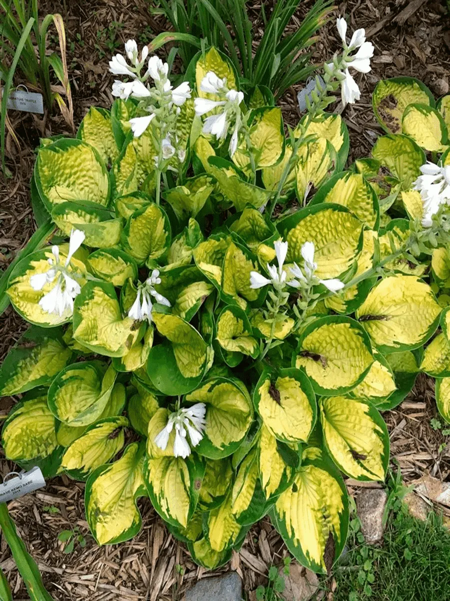 Хоста *Rainforest Sunrise* пленяет взор своей изысканной красотой и элегантностью форм. Листья крупные, сердцевидные, слегка волнистые по краям, словно бережно вырезанные рукой искусного мастера. Их поверхность гладкая, глянцевитая, переливается нежнейшими оттенками золотисто-жёлтого цвета с тонкой зелёной каймой, придающей растению особую декоративность и утончённость. Цветки собраны в рыхлые кисти, возвышающиеся над листвой на стройных цветоносах высотой до полуметра, раскрываются постепенно, демонстрируя свою бело-фиолетовую прелесть. Растёт медленно, формируя компактную розетку диаметром около метра, предпочитая полутень и влажные плодородные почвы, где проявляет всю полноту своего великолепия.