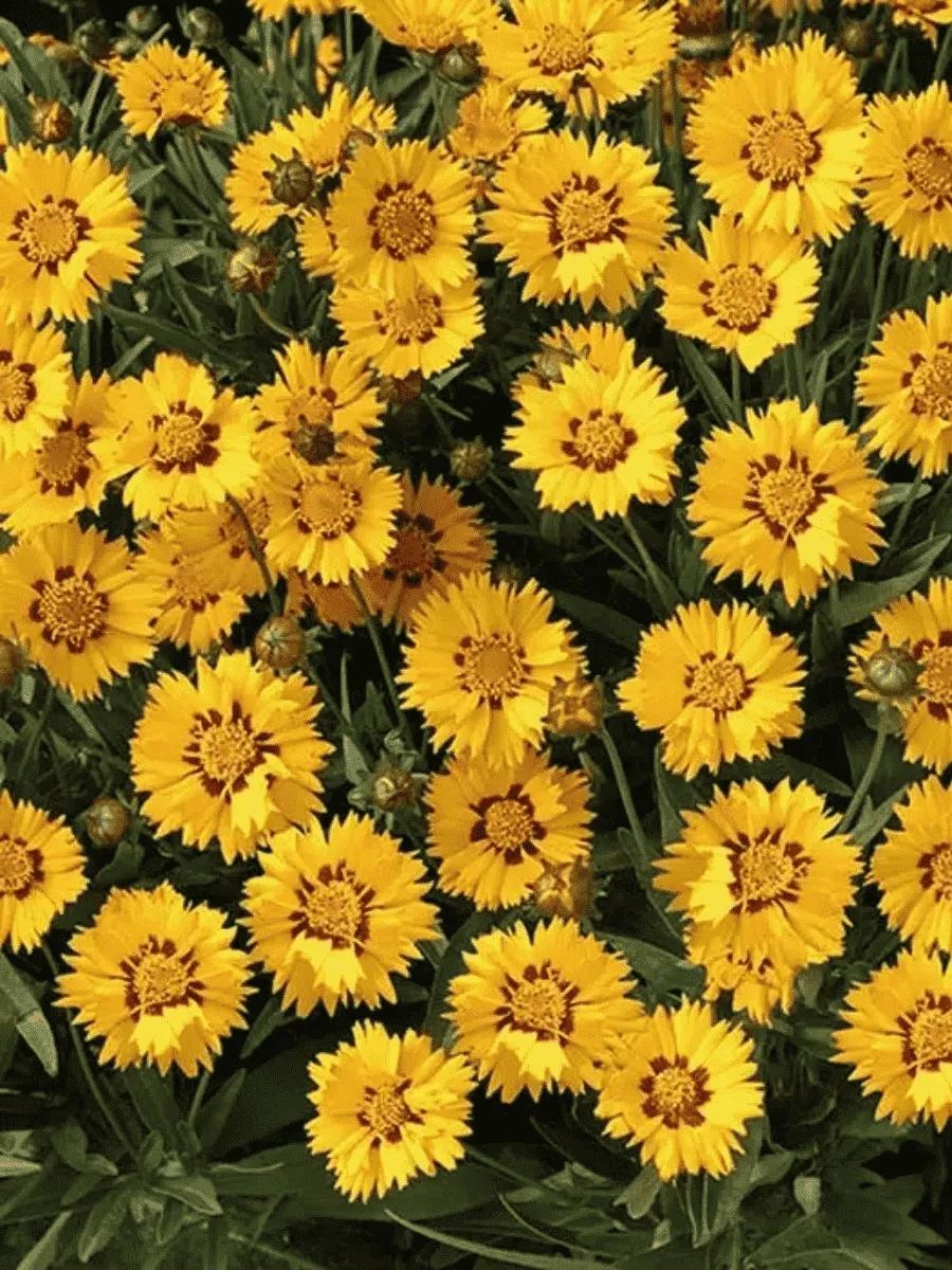 Кореопсис ланцетовидный 'Sunfire' — солнечный цветок, радующий глаз яркими красками и жизнерадостной энергией. Это многолетнее растение высотой около полуметра обладает прямостоячими крепкими стеблями, покрытыми узкими, слегка зазубренными листьями насыщенного зелёного цвета, придающими кусту лёгкость и воздушность. Цветки крупные, диаметром до восьми сантиметров, напоминают маленькие солнышки с ярко-жёлтой сердцевиной и лепестками глубокого оранжевого оттенка, словно охваченные пламенем заката. Период цветения продолжительный, начинается в июне и длится вплоть до первых осенних заморозков, наполняя сад теплом и светом даже в пасмурную погоду. Растёт быстро, легко размножается самосевом, создавая живописные островки солнечного света среди зелени сада.