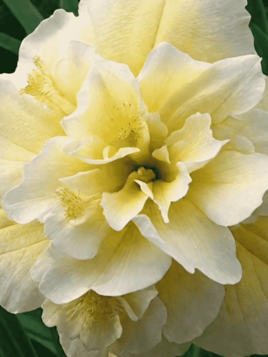 Лилейник *Bowl of Cream* пленяет взор нежностью кремово-белых лепестков, слегка оттенённых золотистым сиянием в центре цветка. Его широкие листья образуют пышную зелёную розетку, элегантно изгибаясь от основания и создавая живописный фон для роскошных соцветий. Цветки крупные, диаметром около десяти сантиметров, распускаются один за другим на высоких прочных цветоносах, возвышающихся над листвой. Период цветения продолжительный, растение радует глаз яркими бутонами с июня до августа, постепенно раскрывая новые цветы взамен увядших. Предпочитает солнечные места, легко адаптируется к различным типам почв, устойчиво к засухе и болезням, благодаря чему широко используется в ландшафтном дизайне садов и парков, где становится истинной жемчужиной среди многолетников.