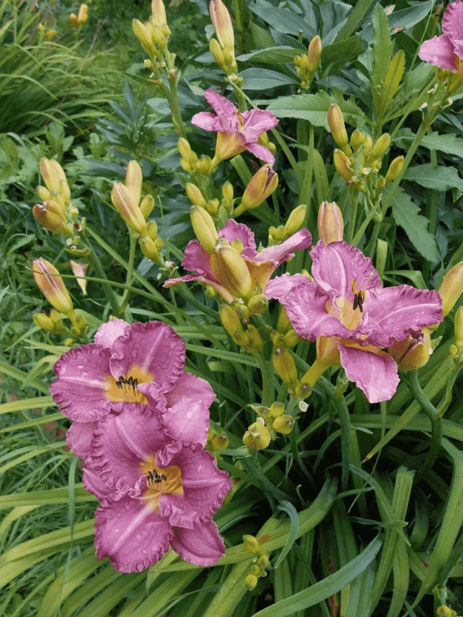 Лилейник *Entrapment* пленяет взор изысканным сочетанием благородной зелени и роскошных цветков, словно воплощением гармонии природы. Его листья узколанцетные, длинные и слегка дугообразно изгибающиеся, образуют пышную розетку, создавая живописный фон для цветения. Цветоносы возвышаются над листвой, достигая высоты около метра, увенчанные крупными бутонами, раскрывающимися в великолепие оранжево-красных лепестков с золотистым отливом и тёмно-коричневыми штрихами, придающими особую глубину оттенкам. Лепестки бархатистые, волнистые по краям, создают впечатление нежности и утончённости. Период цветения продолжительный, каждый цветок радует глаз несколько дней подряд, сменяя друг друга и продлевая очарование сада до позднего лета. Растение неприхотливо, устойчиво к болезням и неблагоприятным условиям, прекрасно адаптируется к различным почвам и климатическим зонам, становясь украшением садов и парков, где бы ни поселилось.