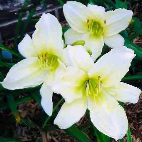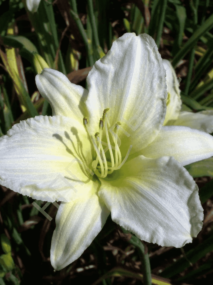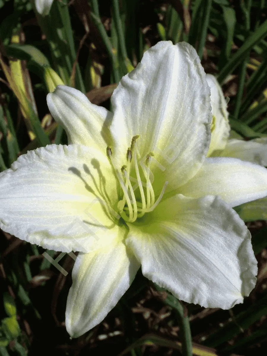 Лилейник *Ice Carnival* пленяет взор изысканным сочетанием нежной белизны лепестков и золотистого сияния горла цветка, словно воплощённый символ чистоты и тепла одновременно. Его листья узколанцетные, гладко блестящие, насыщенно-зелёного цвета, образуют пышную прикорневую розетку, придающую растению элегантность и благородство облика. Цветоносы возвышаются над лиственной массой, достигая высоты около полуметра, увенчанные крупными цветами диаметром до десяти сантиметров. Лепестки слегка волнистые, широкие, плавно переходящие от снежно-белого оттенка к ярко-жёлтой сердцевине, создавая впечатление лёгкого дуновения летнего ветерка. Период цветения продолжительный, начинается в середине лета и длится несколько недель, украшая садовые композиции свежими красками даже в жаркую погоду. Растёт быстро, легко размножается делением корневища, устойчиво к болезням и неприхотливо в уходе, прекрасно адаптируясь к различным условиям произрастания.