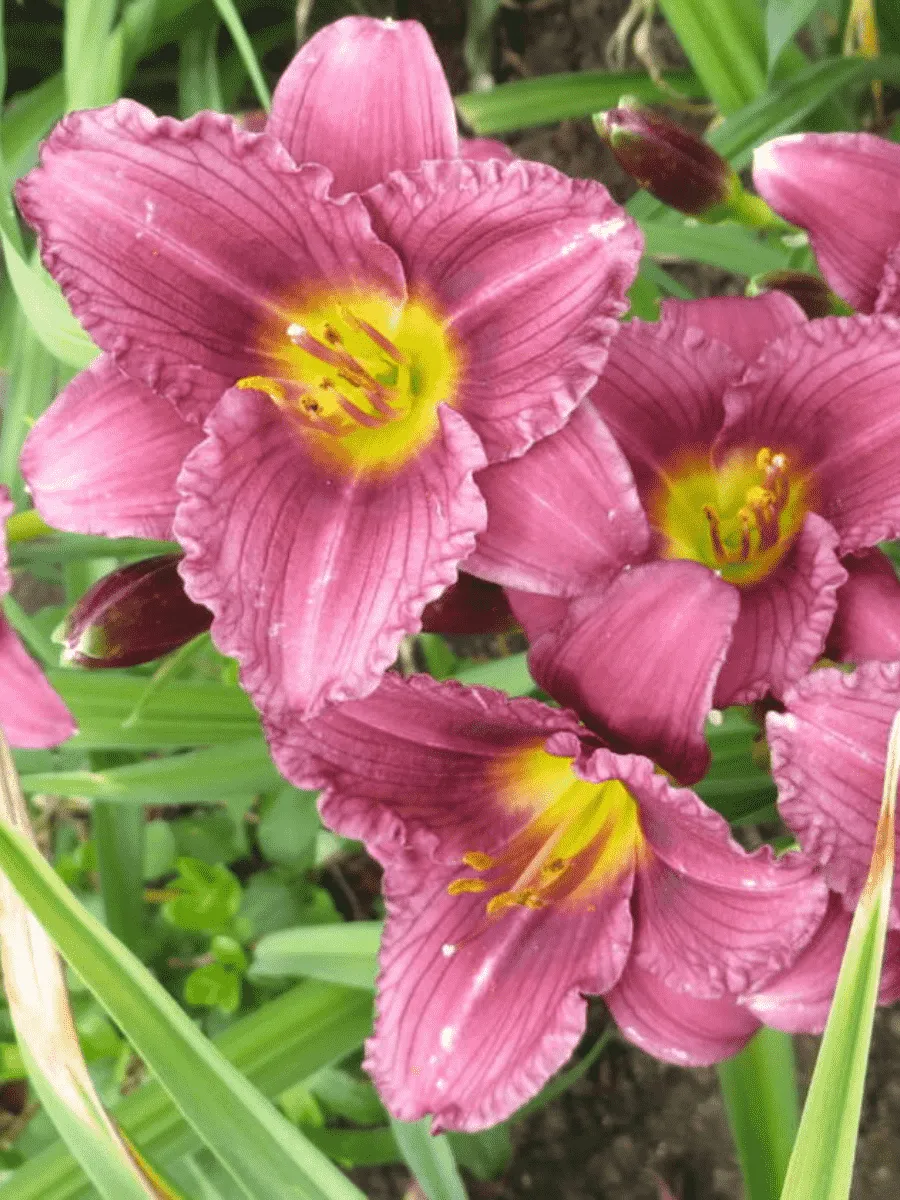 Лилейник пурпурный (Hemerocallis purpurea) пленяет взор роскошной зеленью длинных узких листьев, собранных в пышную прикорневую розетку, словно веером раскинувшуюся над поверхностью почвы. Листья гладкие, блестящие, насыщенно-зелёного цвета, придают растению благородство и утончённость облика. Цветоносы устремляются вверх стройными стрелами высотой до метра, увенчанные крупными бутонами, раскрывающимися один за другим в течение всего лета. Каждый цветок живёт лишь сутки, однако благодаря многочисленным почкам растение радует глаз непрерывным цветением. Лепестки цветков бархатистые, слегка волнистые, окрашены в нежные оттенки лилово-пурпурного тона с золотистым горлом, источают тонкий аромат, привлекающий насекомых-опылителей. Корневище мощное, мясистое, позволяет лилейнику успешно зимовать даже в суровых условиях средней полосы России, быстро разрастаясь и формируя густые куртины, способные украсить любой садовый участок.