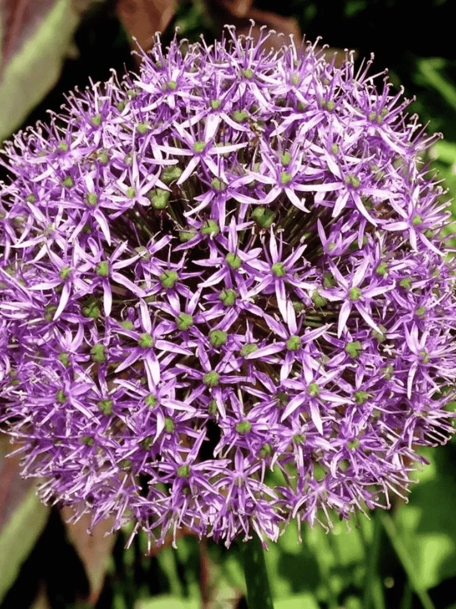 Лук Кристофа (Allium cristophii), прозванный также луком звёздчатым, пленяет взор крупными шаровидными соцветиями диаметром до 15 см, состоящими из множества мелких фиолетово-сиреневых цветков-звёздочек, сияющих над поверхностью земли подобно миниатюрной галактике. Листья широкие, плоские, серо-голубые, слегка восковые, образуют компактную розетку высотой около 40–60 см, подчёркивая элегантность стебля, который возвышается стройным серебристым стержнем среди зелени сада. Цветёт лук в мае-июне, привлекая внимание своей необычной формой и насыщенным цветом, после цветения оставляет эффектные семенные коробочки, продолжающие украшать участок вплоть до осени. Растение неприхотливо, предпочитает солнечные места и хорошо дренированные почвы, легко размножается семенами и луковицами, широко используется в ландшафтном дизайне благодаря своему экзотическому облику и способности создавать яркие акценты даже на небольших участках.